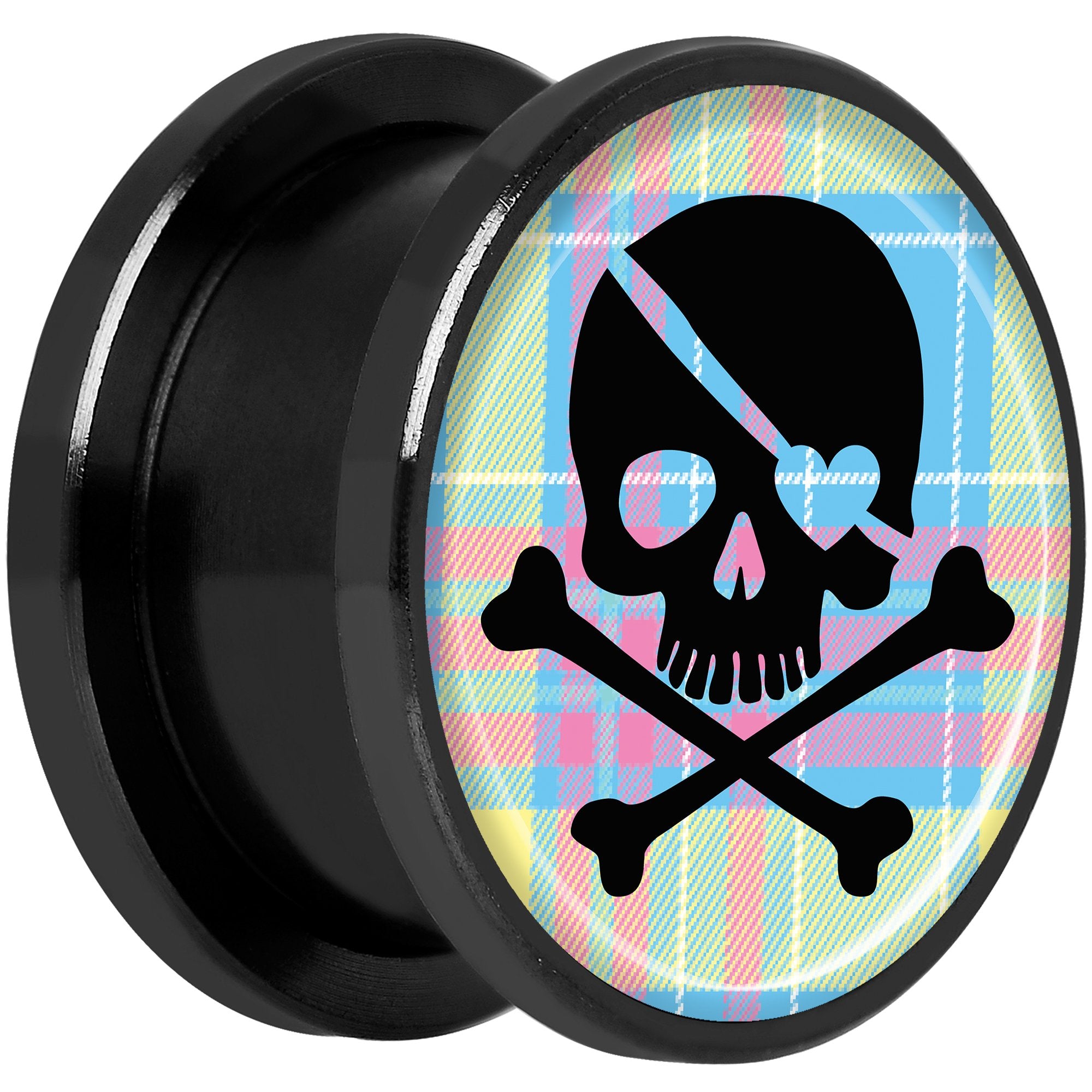 Pink Green Plaid Heart Skull Black Anodized Screw Fit Plug Set 5/8
