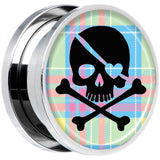 Pink Green Plaid Heart Skull Steel Screw Fit Plug Set 18mm