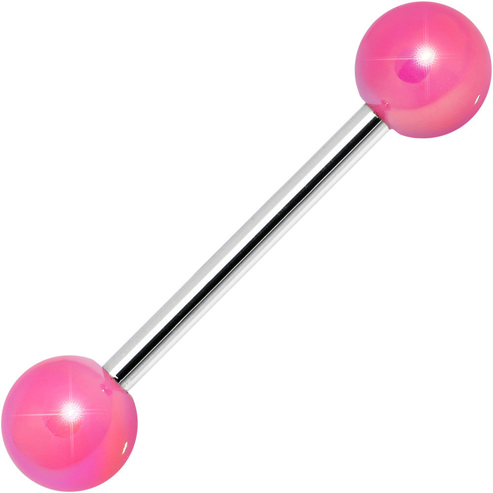 Pink Metallic Acrylic Barbell Tongue Ring