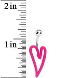 The traditional symbol of love gets a thoroughly updated look with this colorful navel ring. A hollow heart is created from bright neon pink enamel and twisted into a unique shape. This belly button ring is a perfect piece of pierced body jewelry for Valentine's Day or any day of the year.