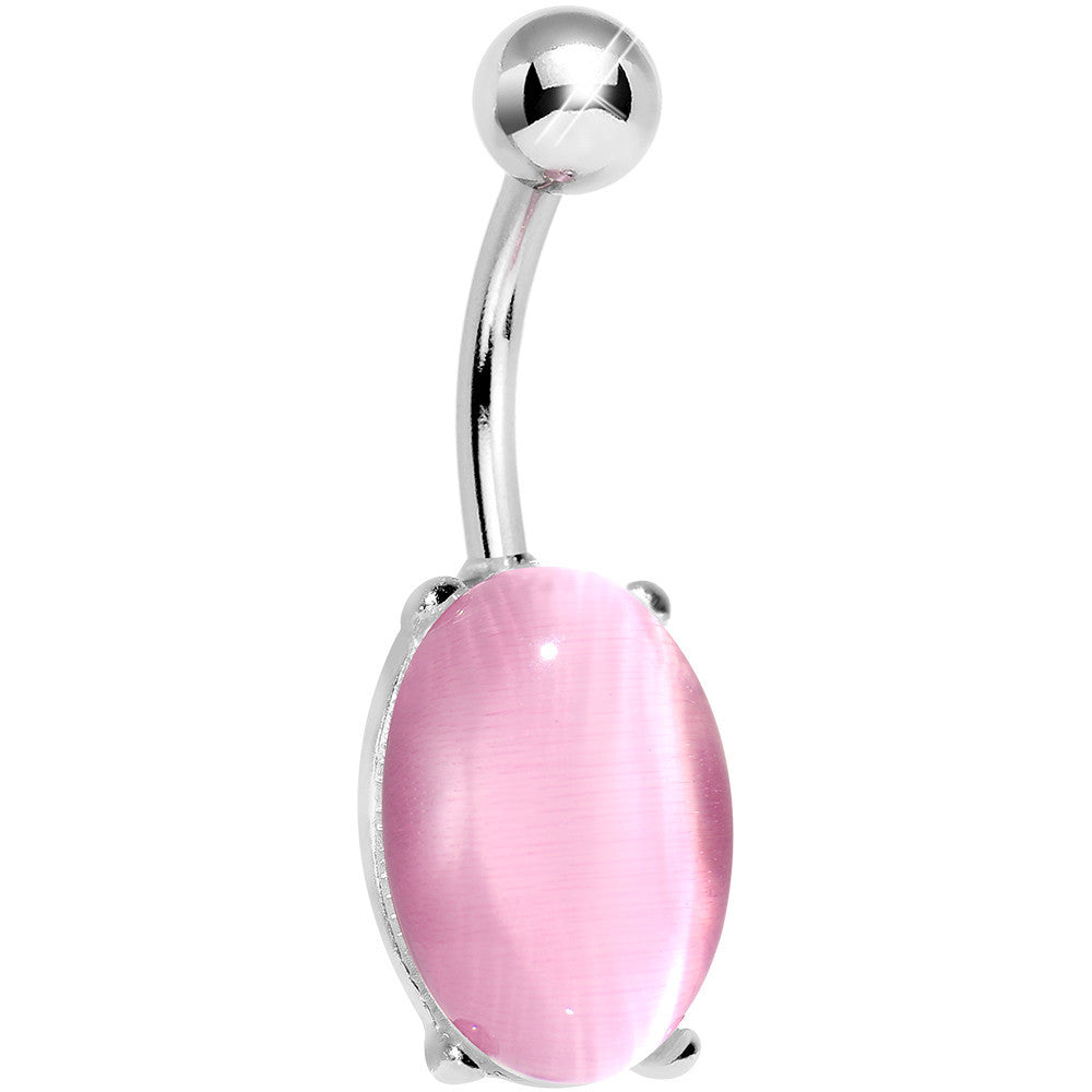 Show off timeless fashion sense with a natural stone pink opal belly ring. The stainless steel barbell is attached to an authentic oval-shaped opal to add class and beauty to any outfit. Authentic opal navel ring pierced Body Jewelry./P>