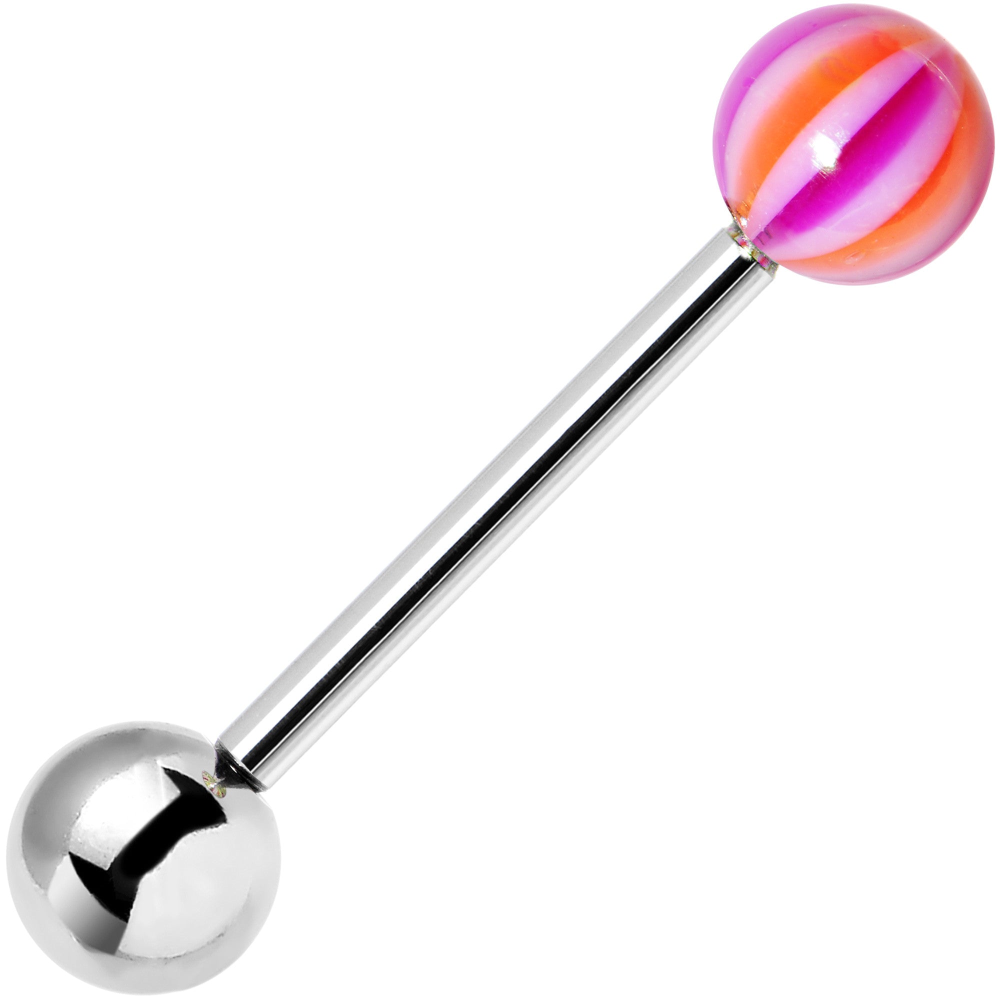 Pink Purple Stripe Beach Ball End Barbell Tongue Ring