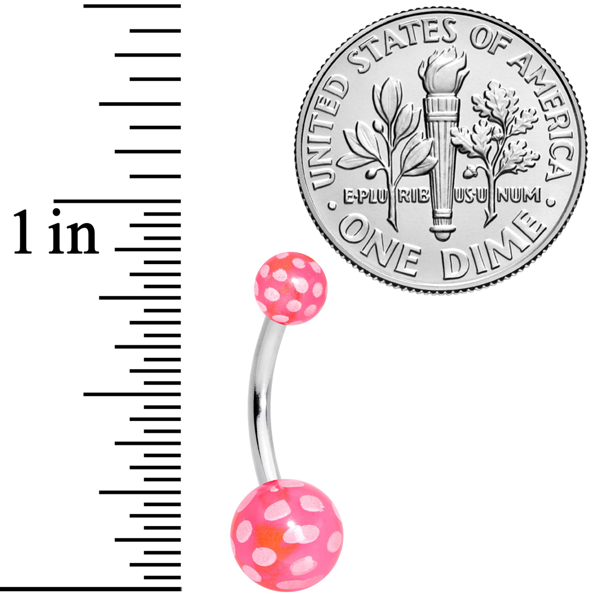 Hypoallergenic jewelry for sensitive skin.Pink White Polka Dot UV Reactive Acrylic Ball Belly Ring