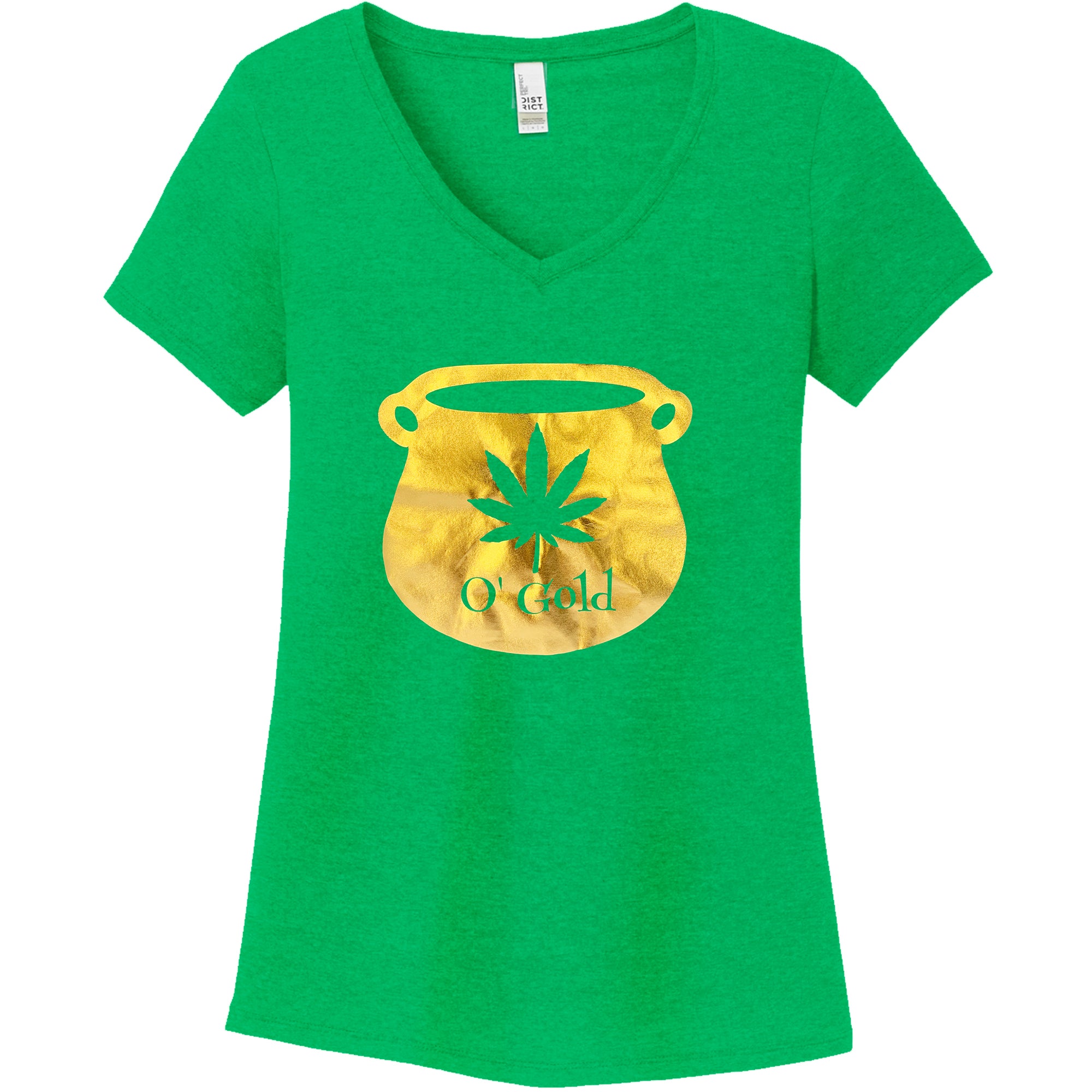 Pot Leaf Pot of Gold Green Frost V-Neck Tee Shirt