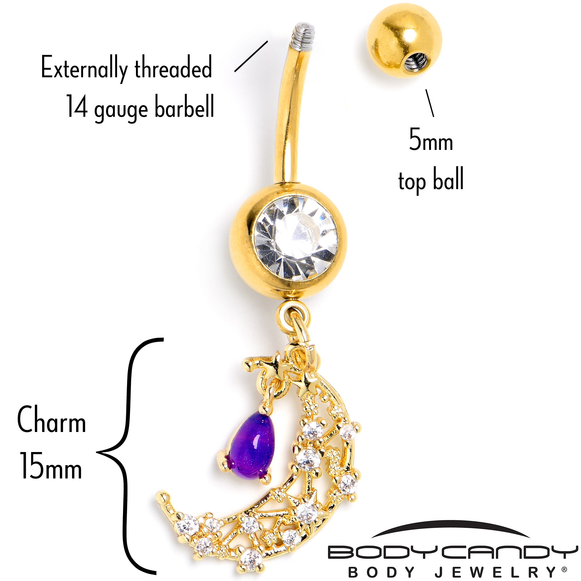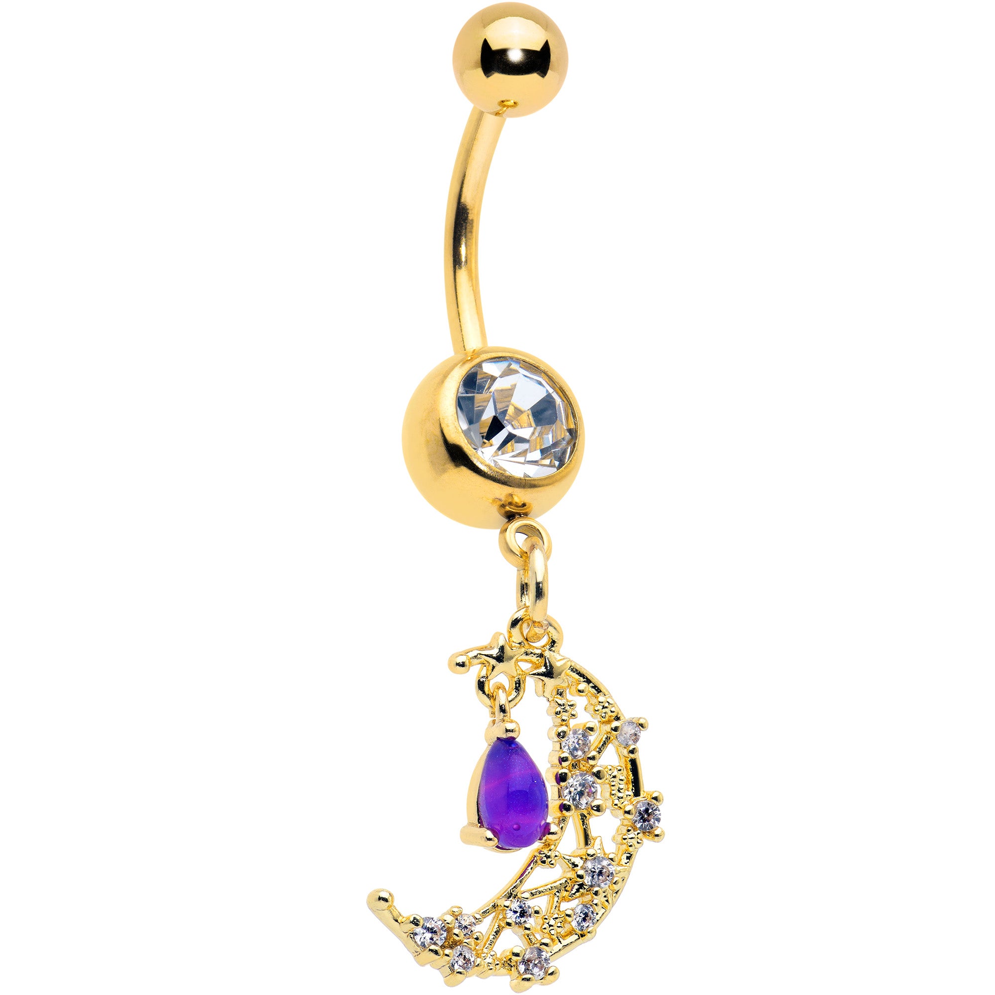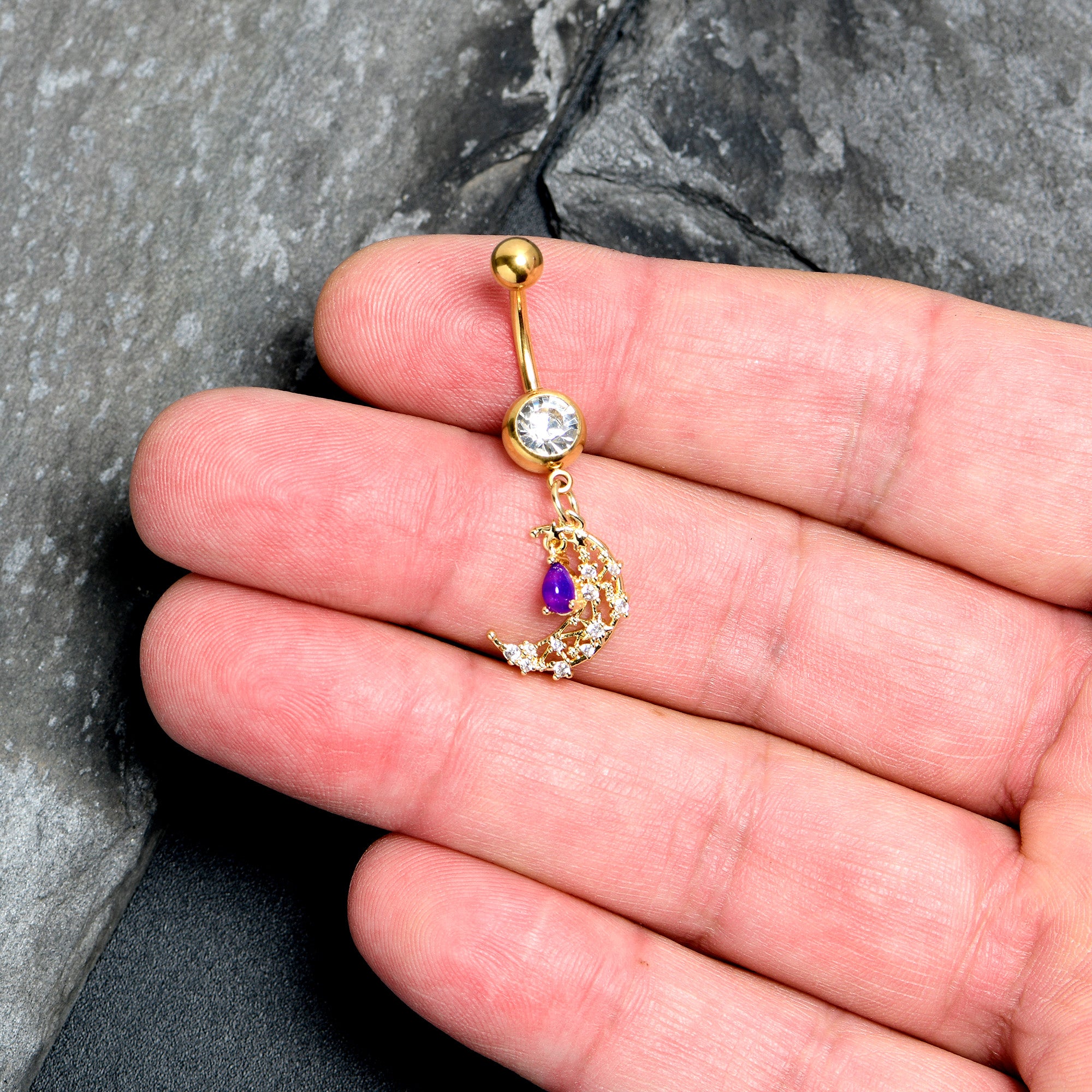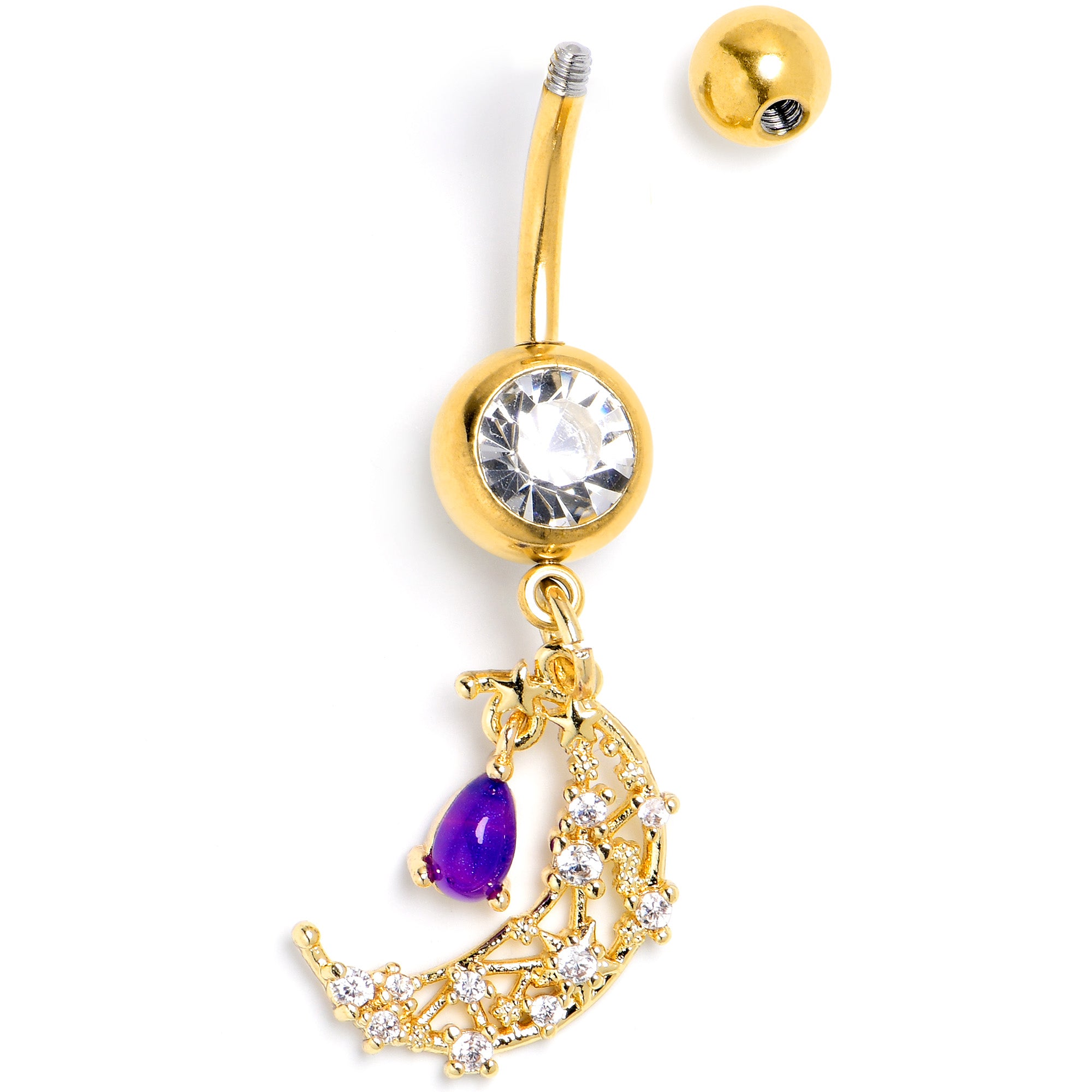 Purple Gem Gold Tone Constellation Moon Dangle Belly Ring