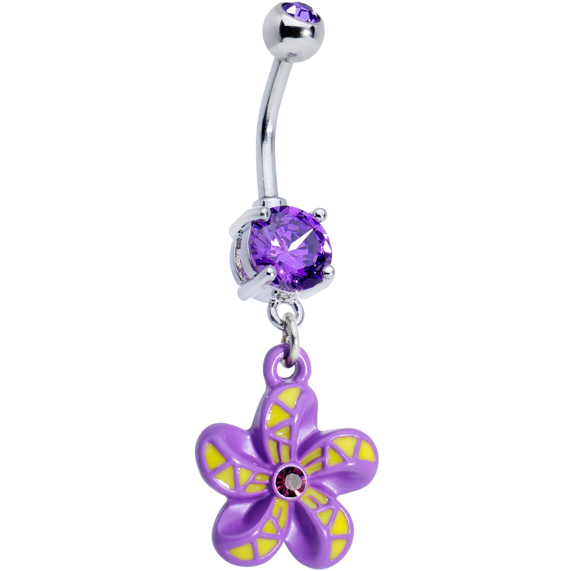 Purple Gem Purple Yellow Swirl Pinwheel Dangle Belly Ring