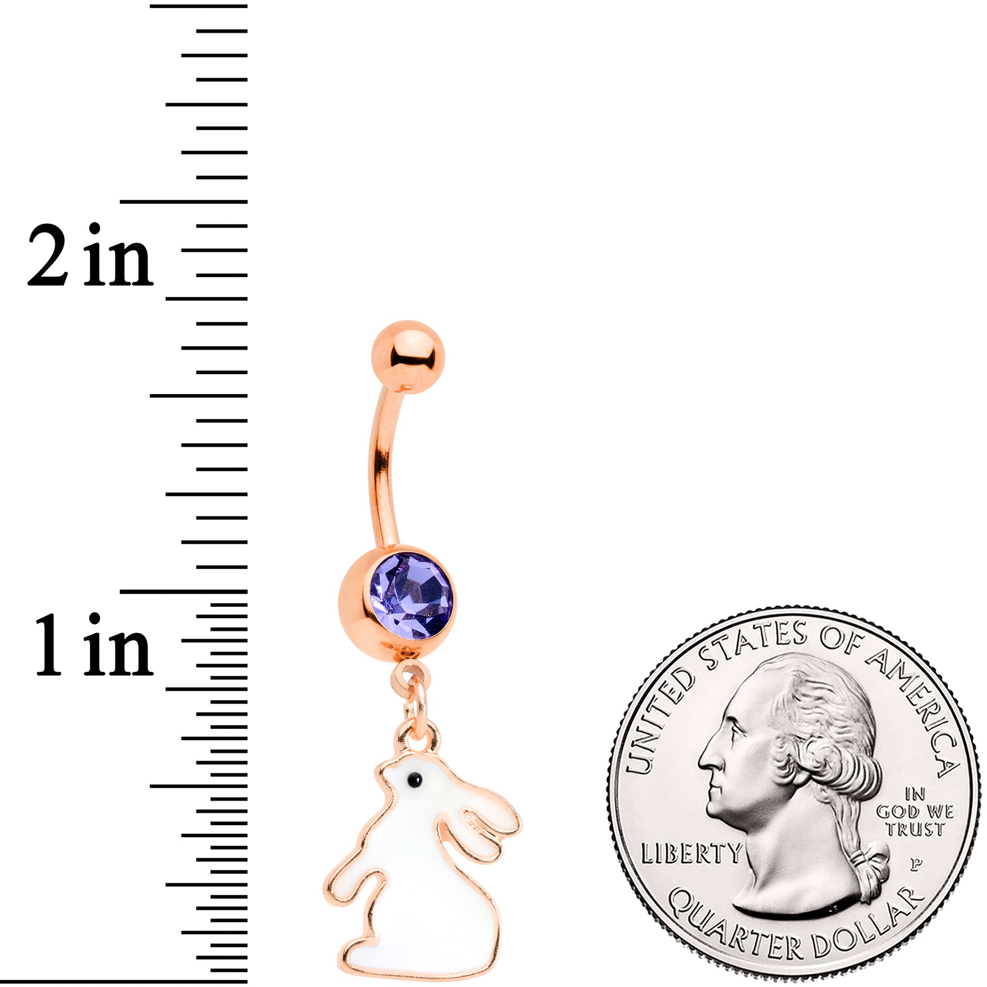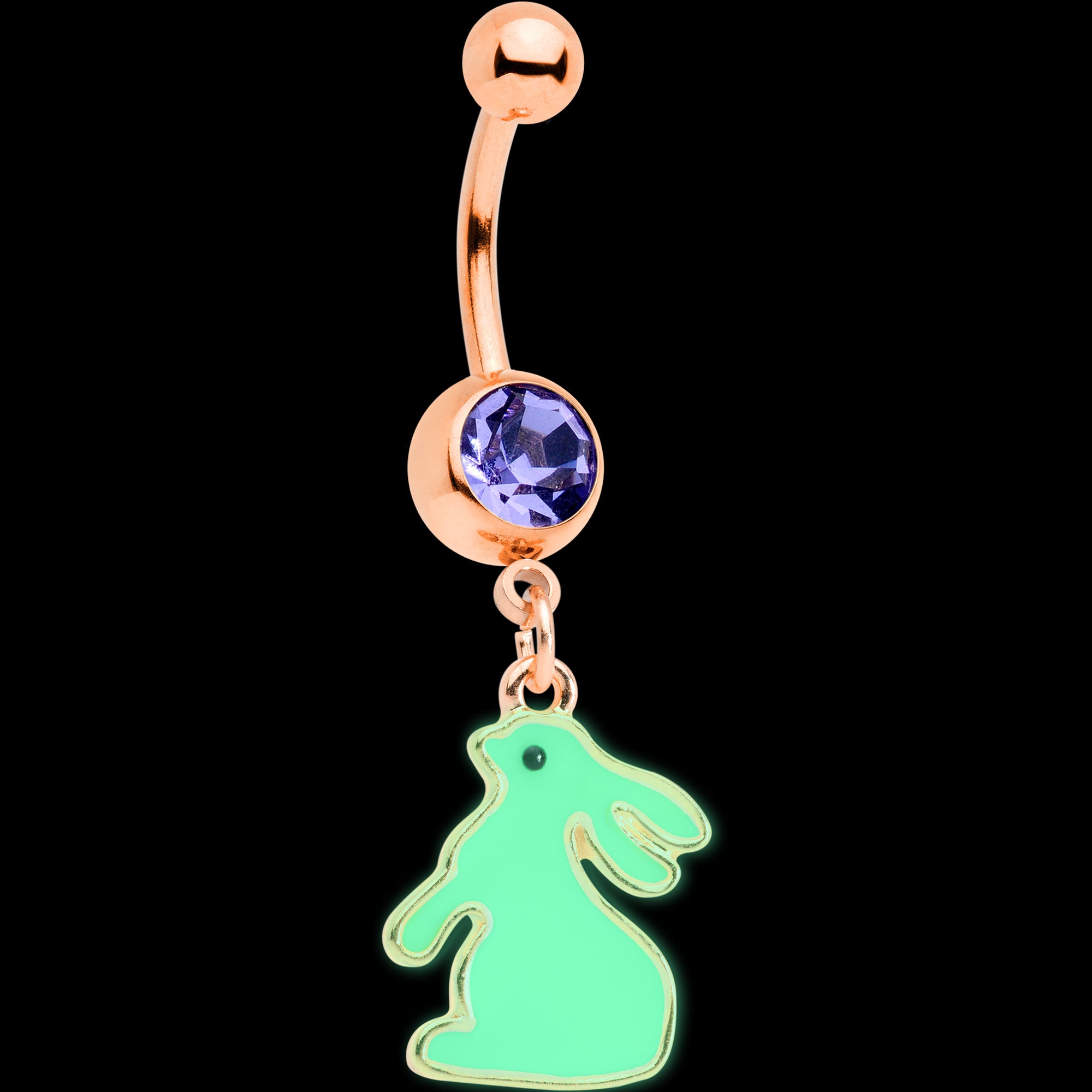 Purple Gem Rose Gold Tone Glow in Dark Easter Bunny Dangle Belly Ring