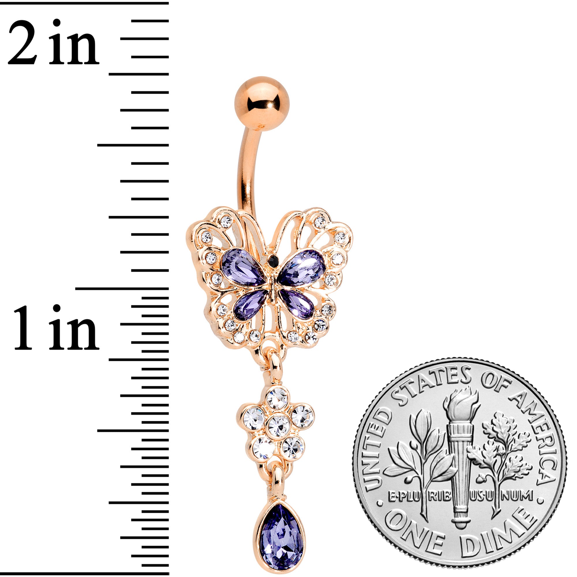 Purple Gem Rose Gold Tone Lacy Butterfly Flower Drop Dangle Belly Ring