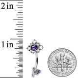 Unlock a whole new look with this 14 gauge navel ring! It's made with a 3/8" durable 316L surgical grade stainless steel curved barbell. The top end features the key's bow, composed of openwork hearts and set with a large purple gem at the center. The bottom end is the key's bit, embellished with a matching purple gem for a cohesive appearance. Unlock a look you're going to love with this classic, key-themed belly piercing ring!