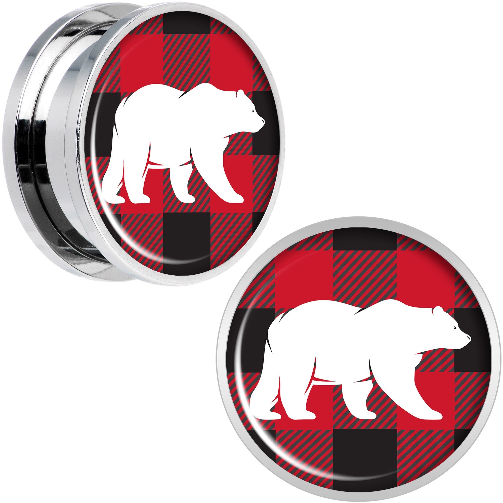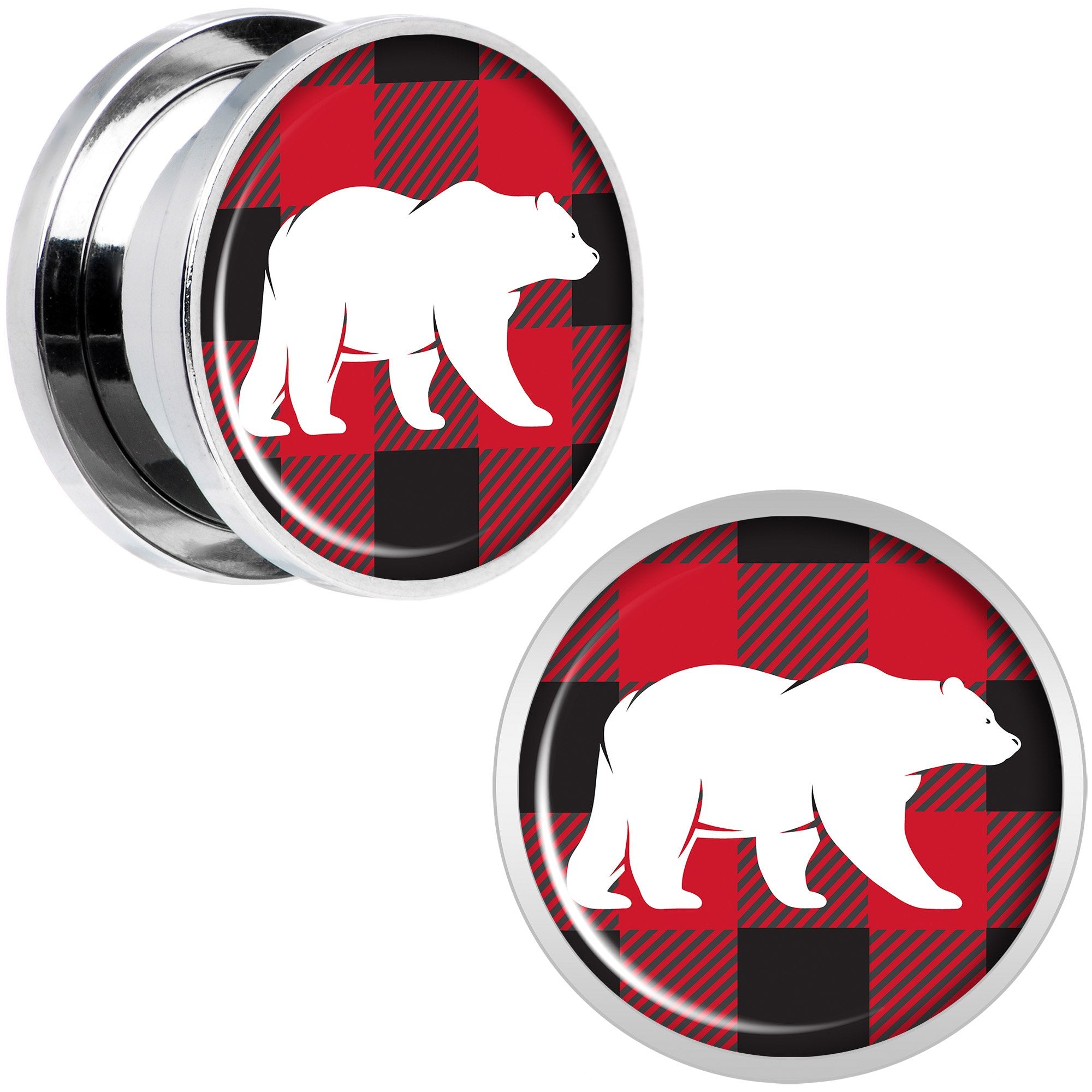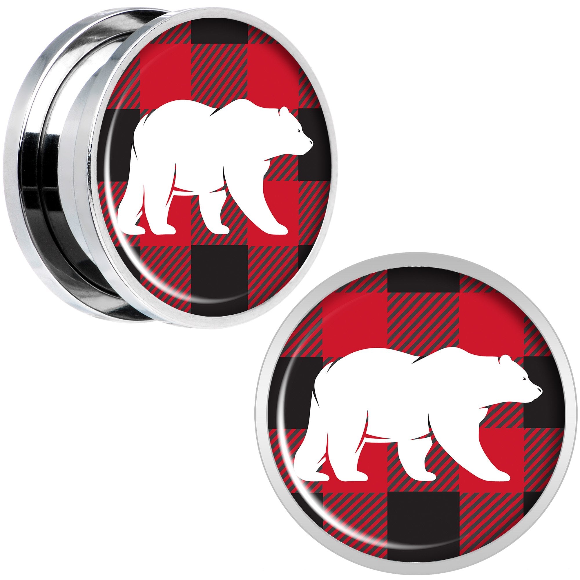 ,Red Black Plaid Polar Bear Screw Fit Plug Set Sizes 5mm to 20mm