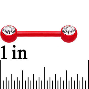Red Ceramic Coated Gem Ended Barbell Nipple Ring