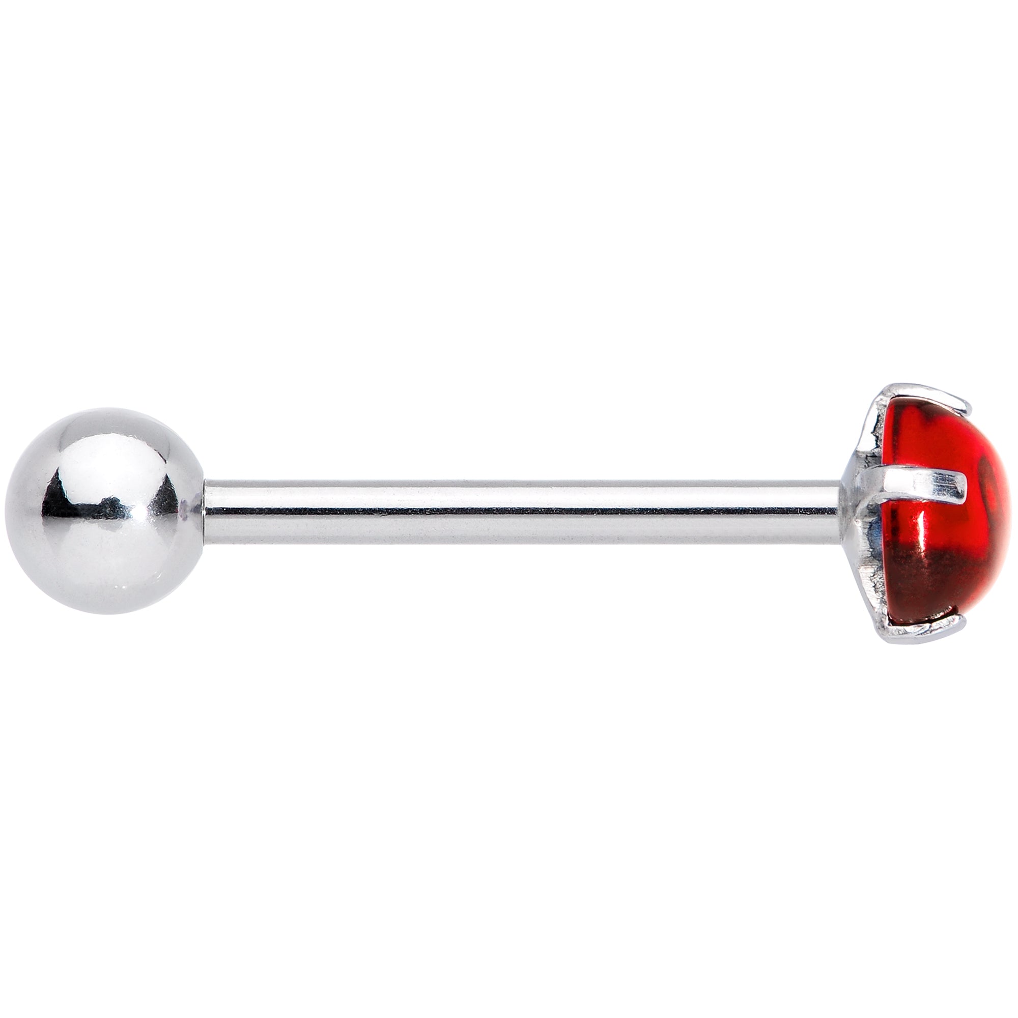 Red CZ Gem Smooth Hemisphere Barbell Tongue Ring