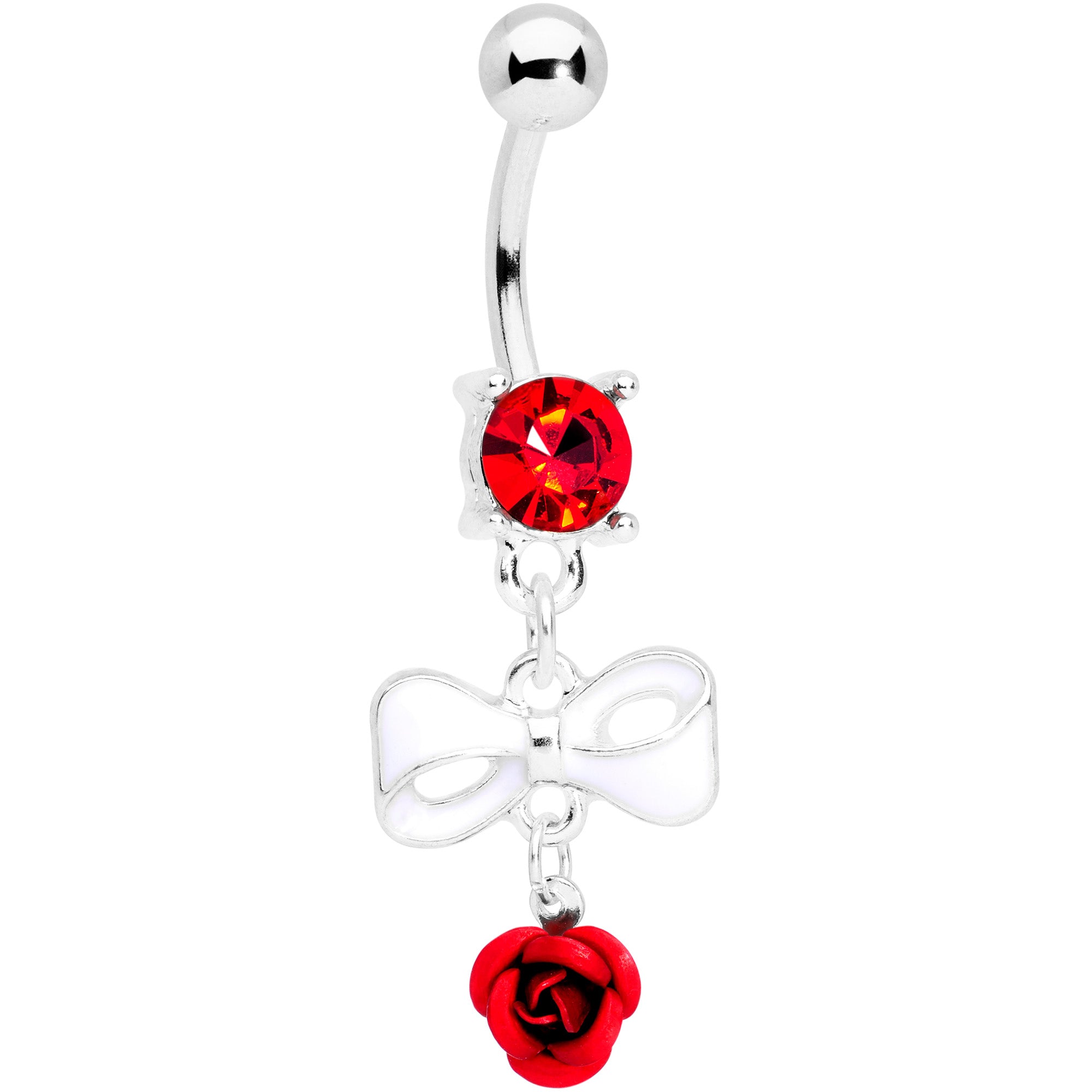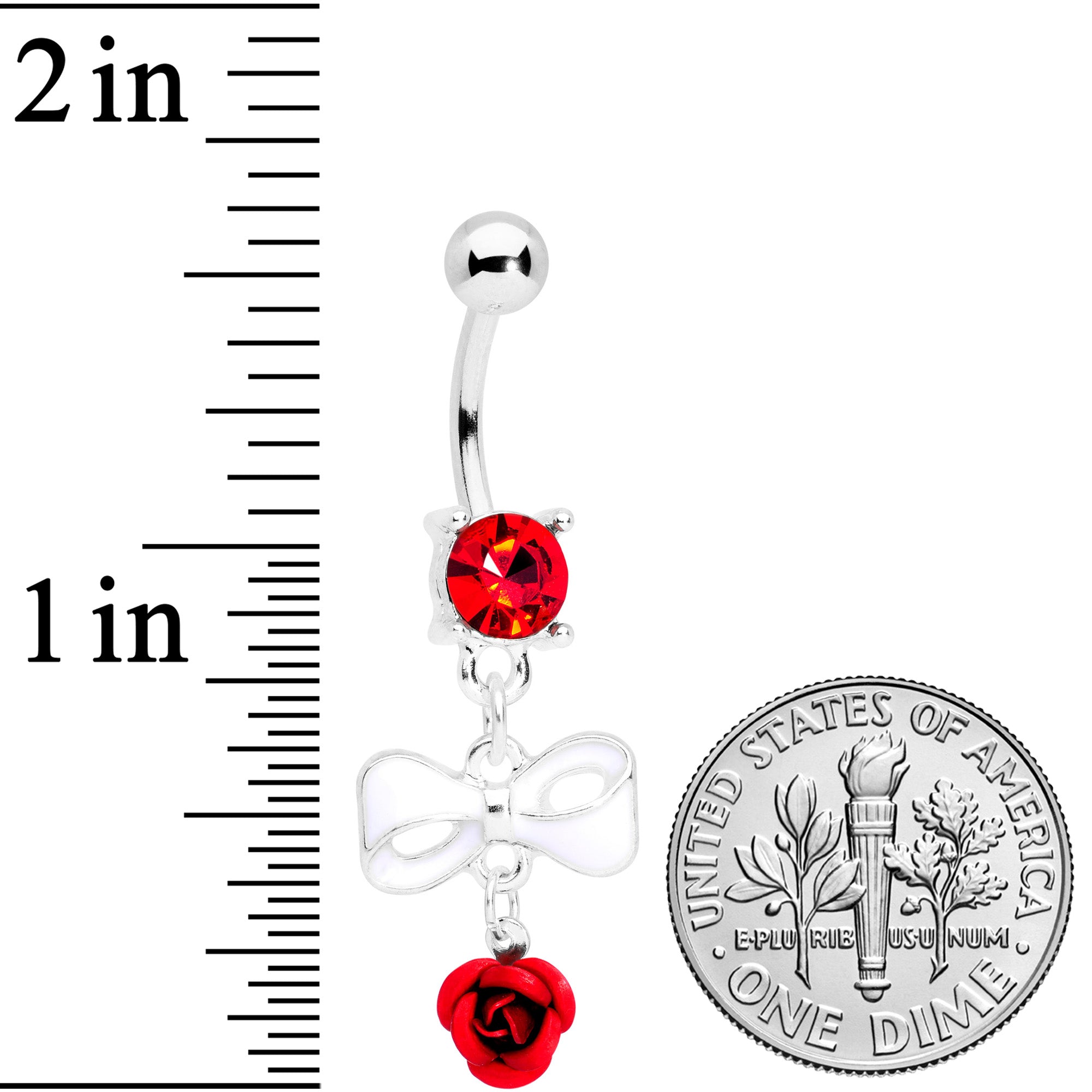 Red Gem Bow Rose Flower Dangle Belly Ring