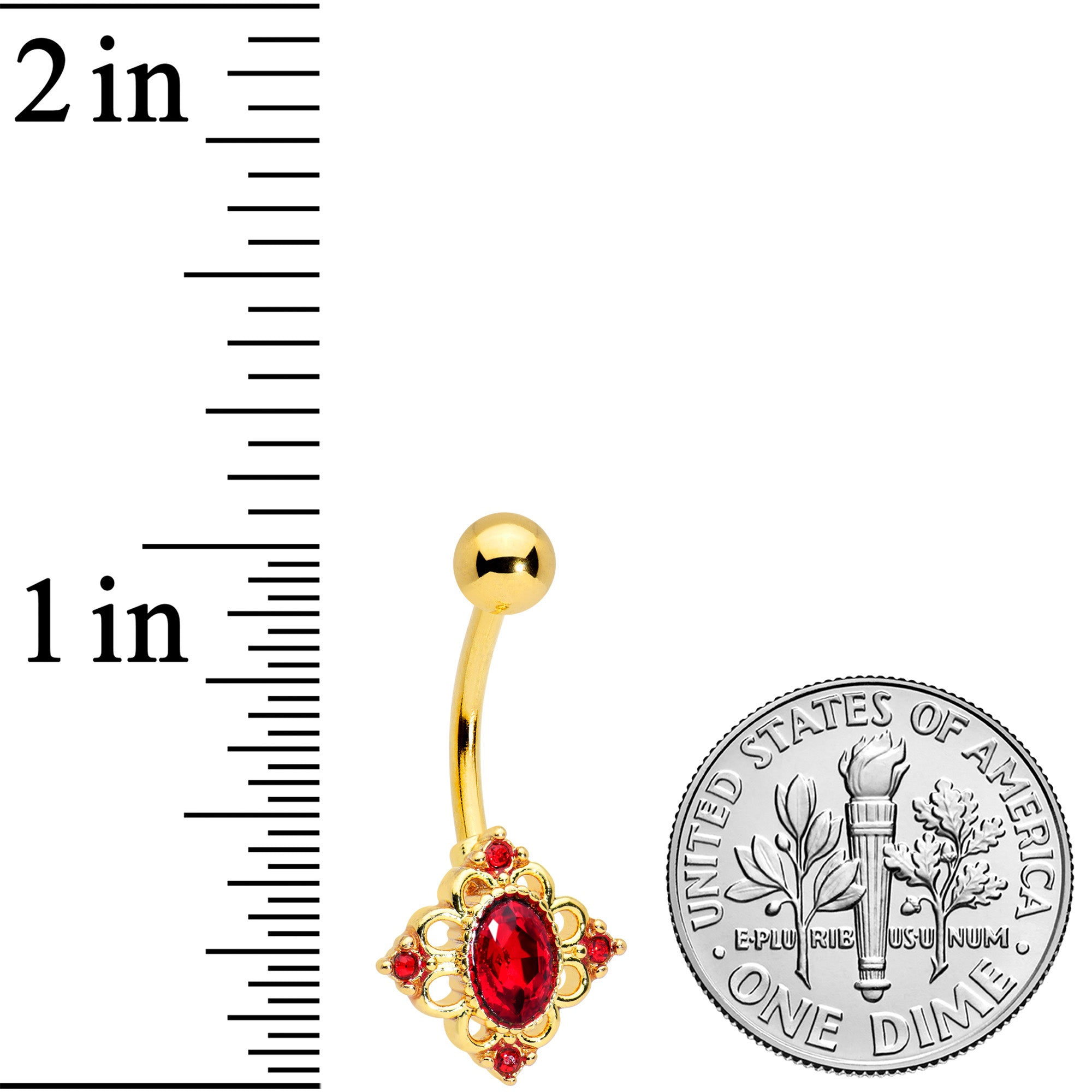 Red Gem Gold Tone Rich Regal Rhombus Belly Ring