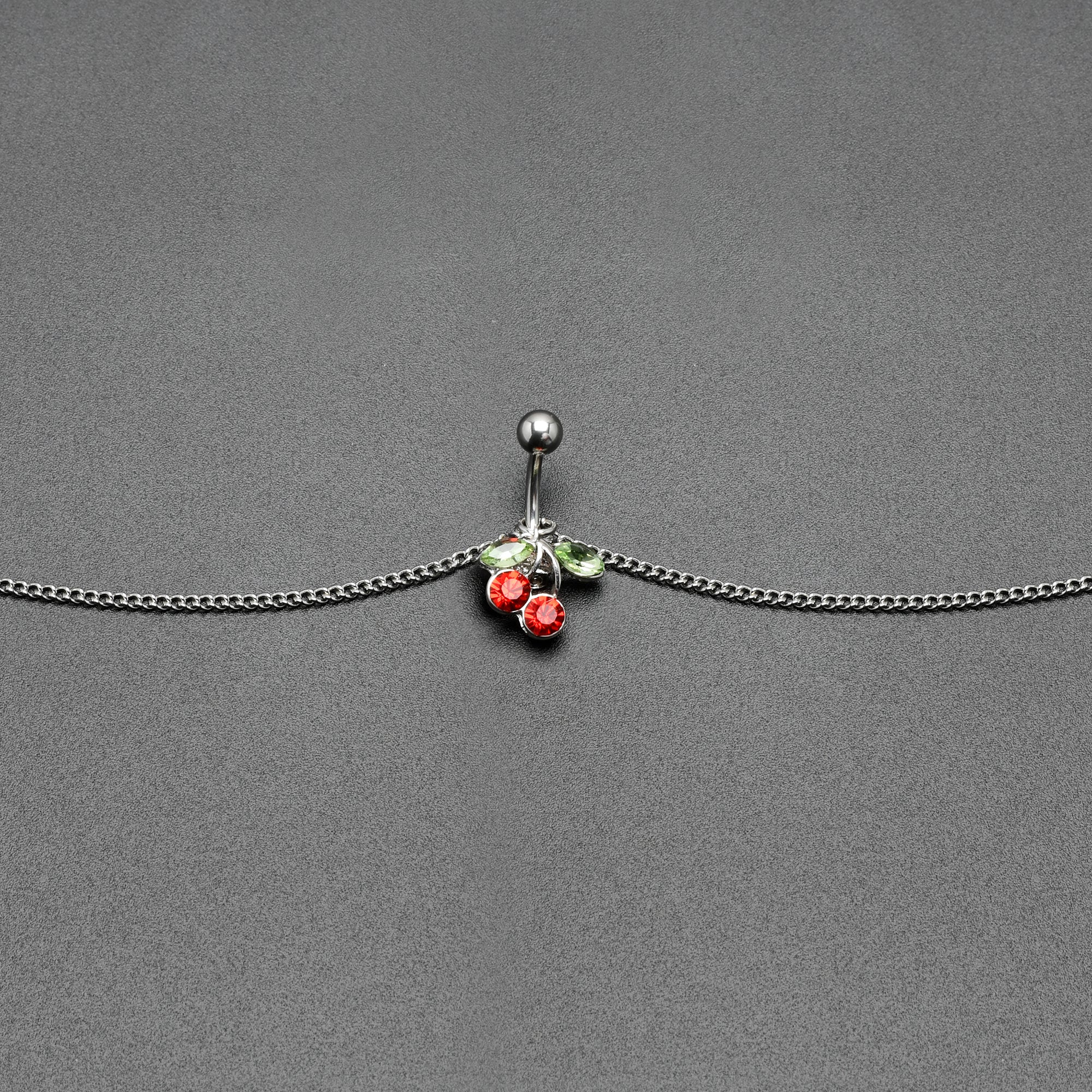 Red Green Gem Cheery Cherries Fruit Belly Ring Belly Chain