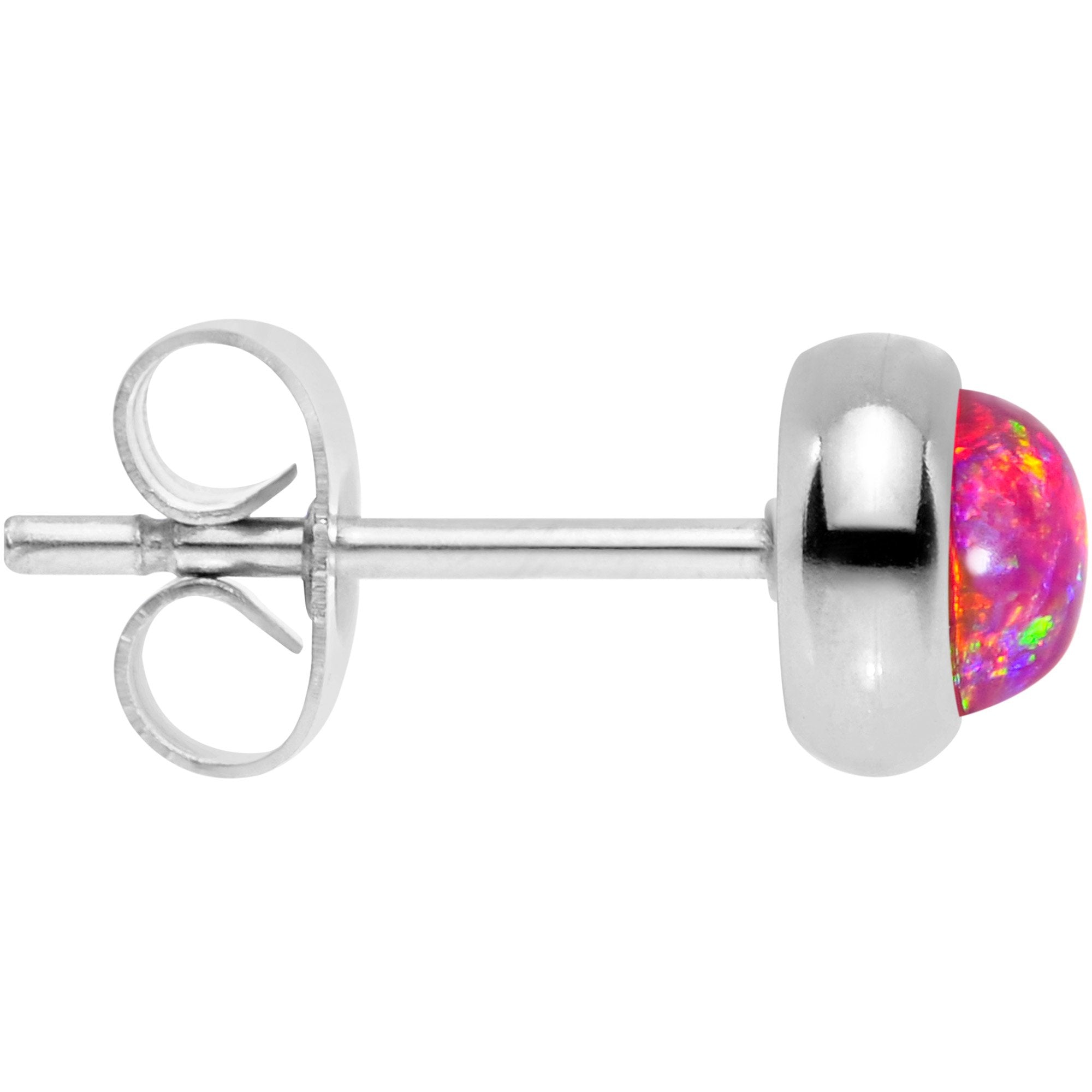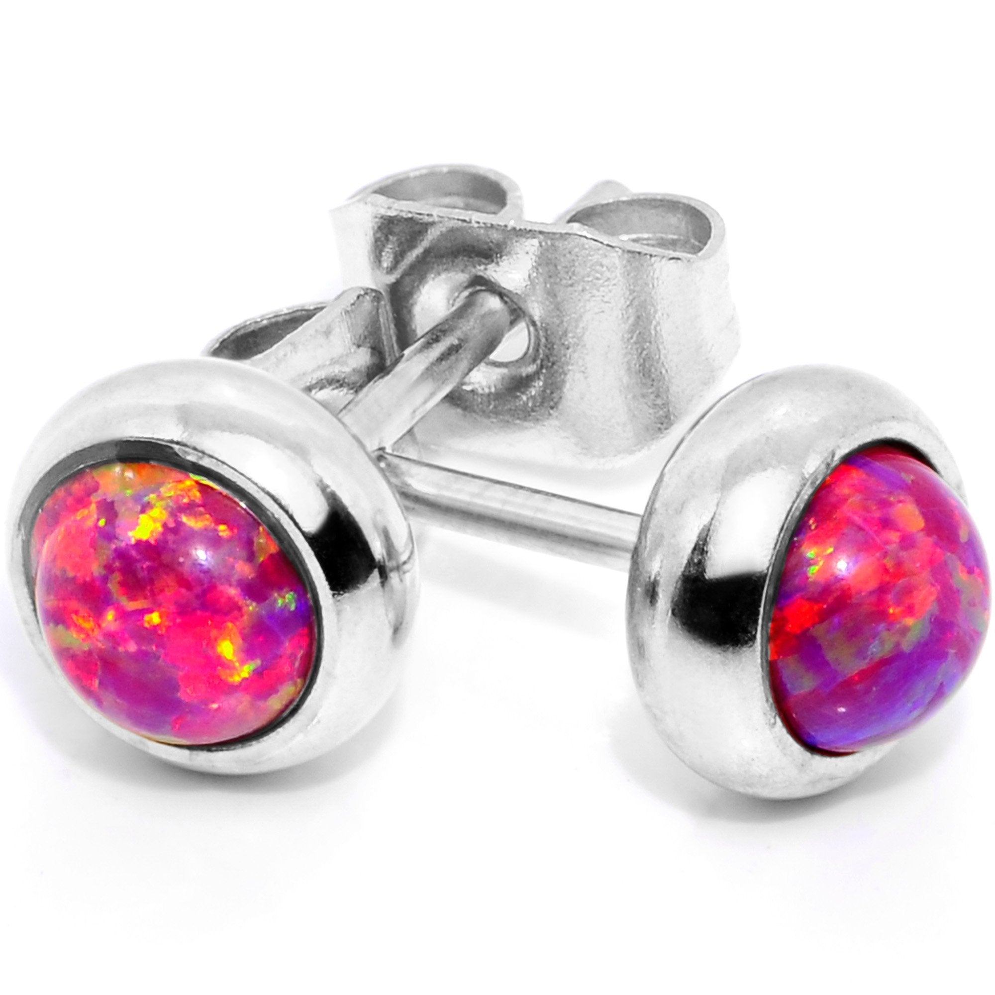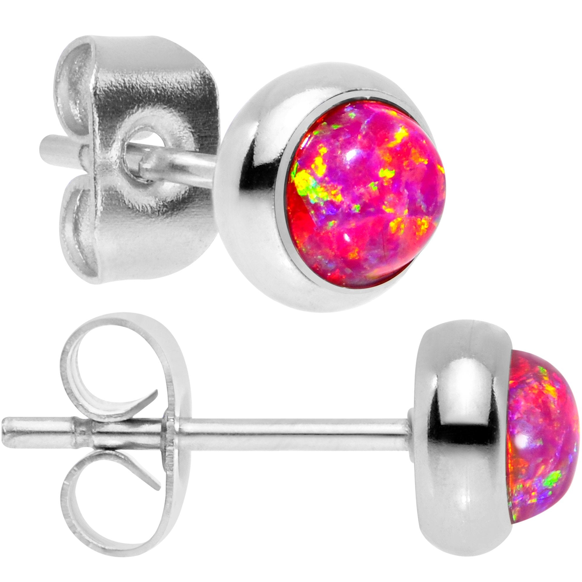 Show off your love of color and cool style when you wear this pair of pretty fashion earrings. Made with 316L surgical grade stainless steel posts with friction backings, these 6mm diameter earrings for women feature red synthetic opal inlays.