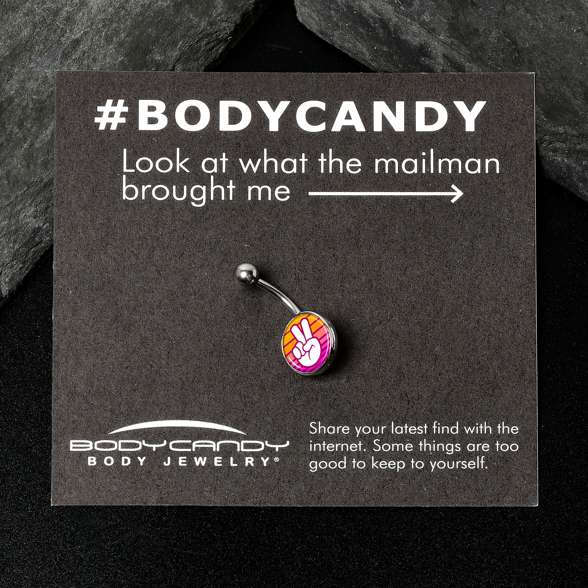 Hypoallergenic belly ring for sensitive skinRetro Stripes Peace Sign Fingers Belly Ring