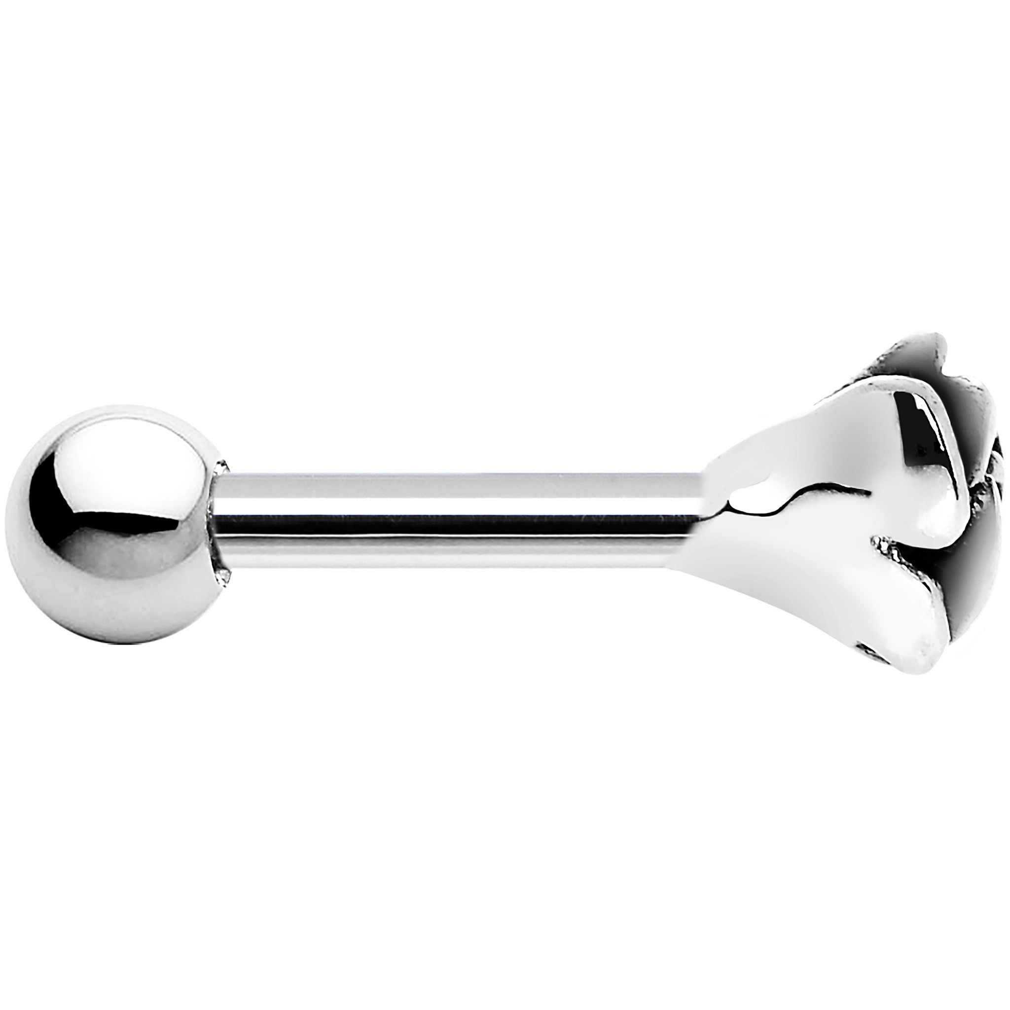 Rose cartilage earring. This 16 gauge cartilage body piercing is fashioned with a stainless steel straight barbell and .925 silver charm. Upper ear jewelry for the tragus or cartilage. Cartilage stud earring.