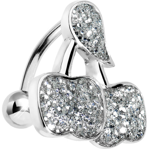 The glittery silver cherries on this top down belly button ring are sure to get you noticed! Although the nutritional value of this sparkly fruit may be questionable, its glam appeal will make this top drop navel ring a delicious part of your pierced body jewelry collection.