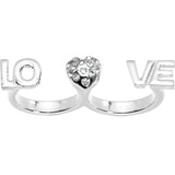Silver Tone Heart Love Double Finger Ring