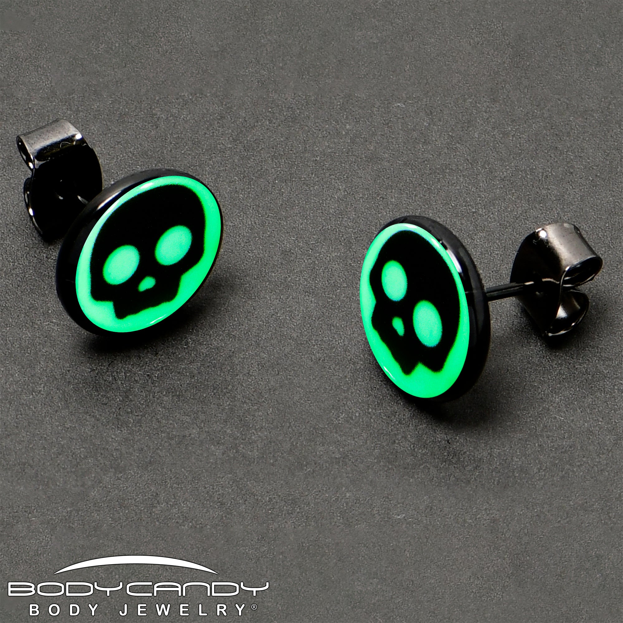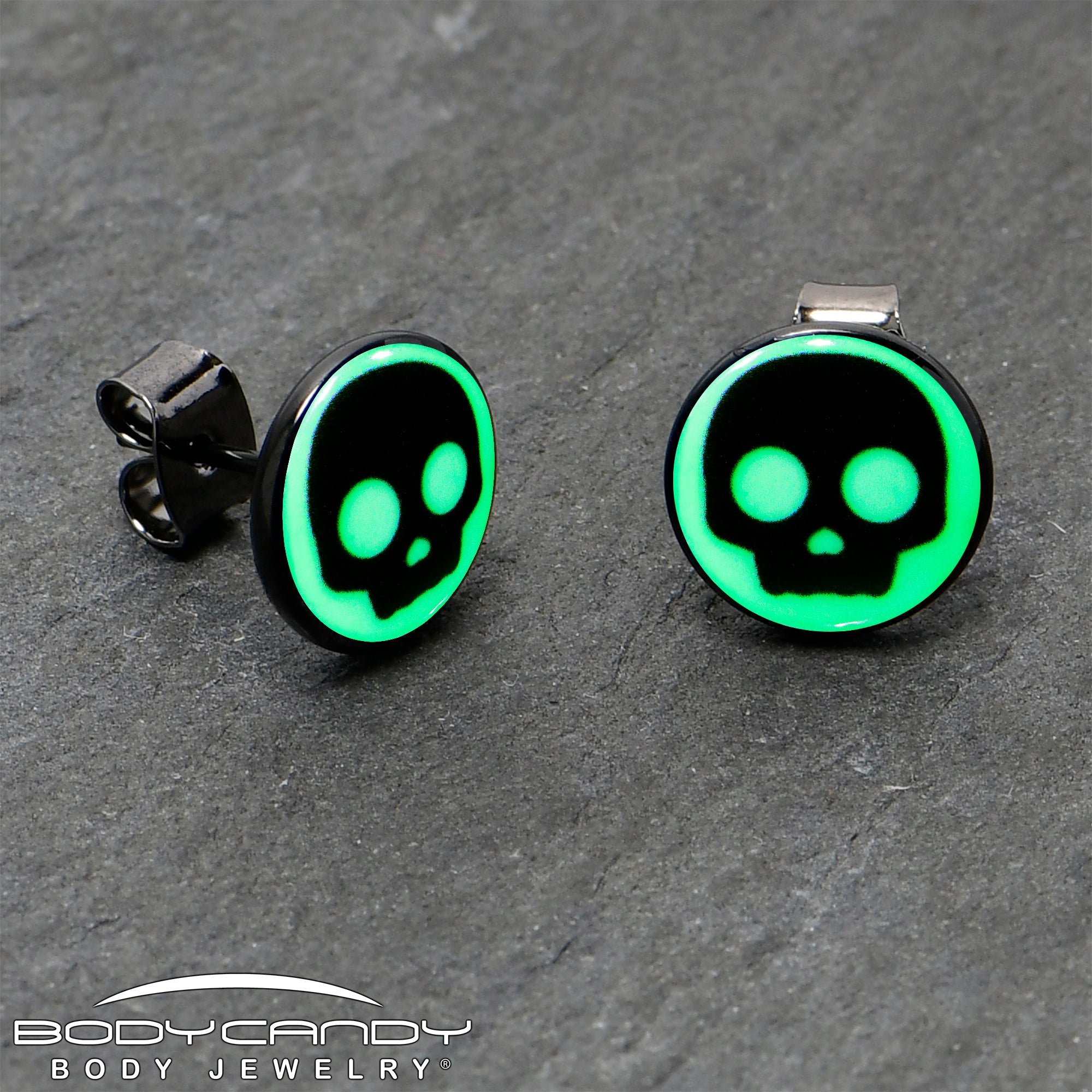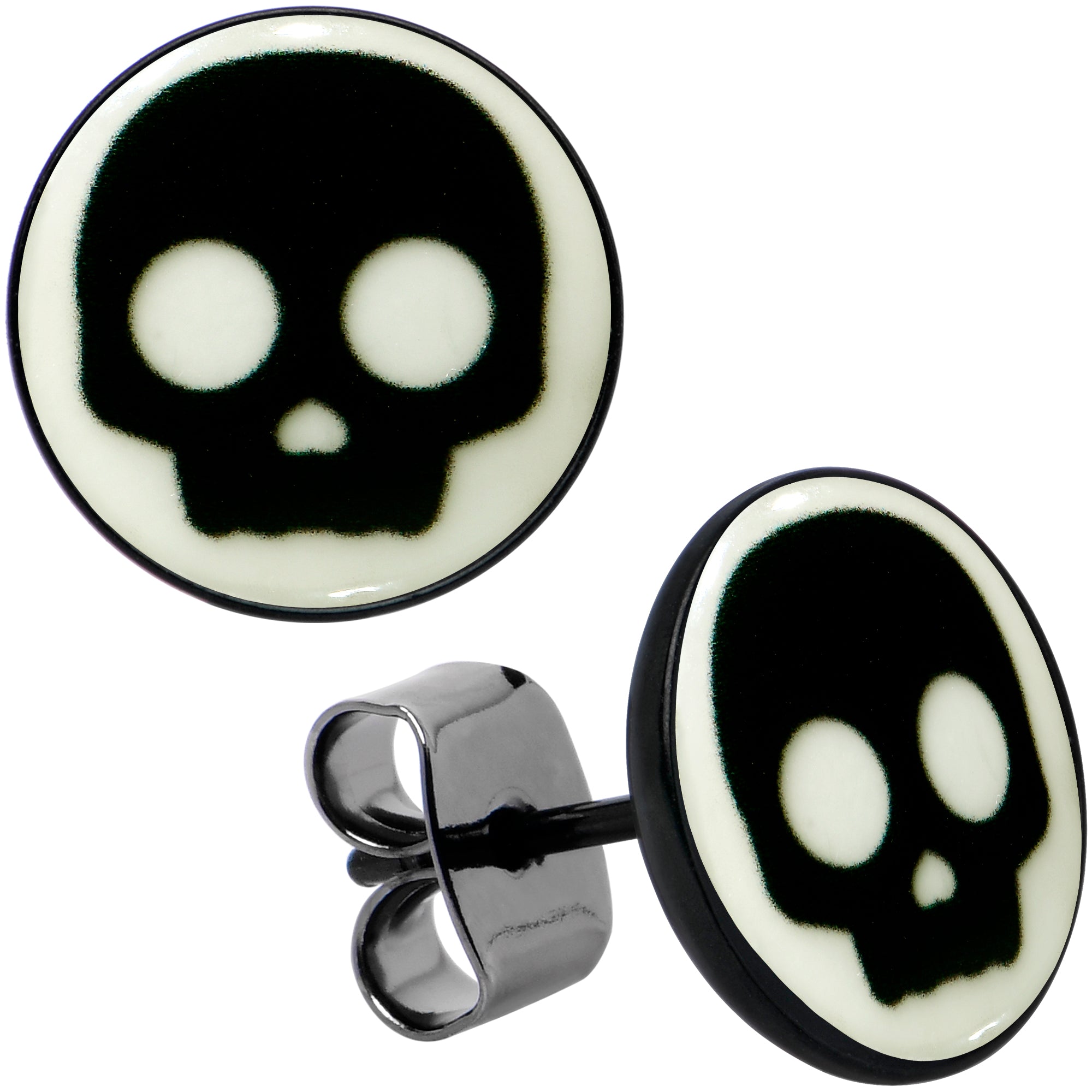 Hypoallergenic jewelry for sensitive skin.Simple Skull Glow in the Dark Stud Earrings