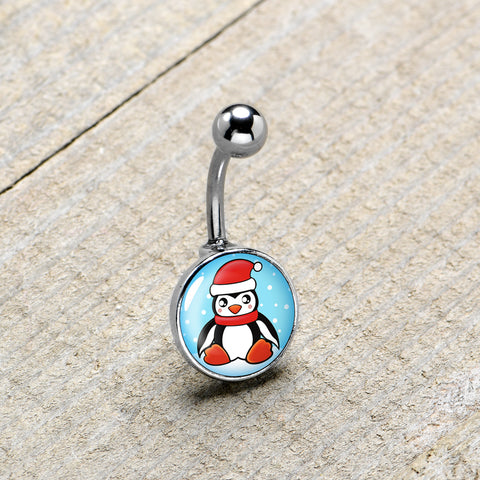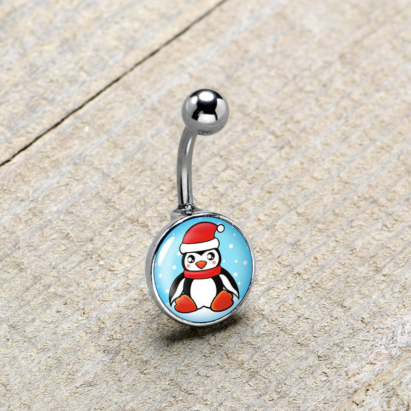 Hypoallergenic belly ring for sensitive skinSnowfall Holiday Penguin Belly Ring