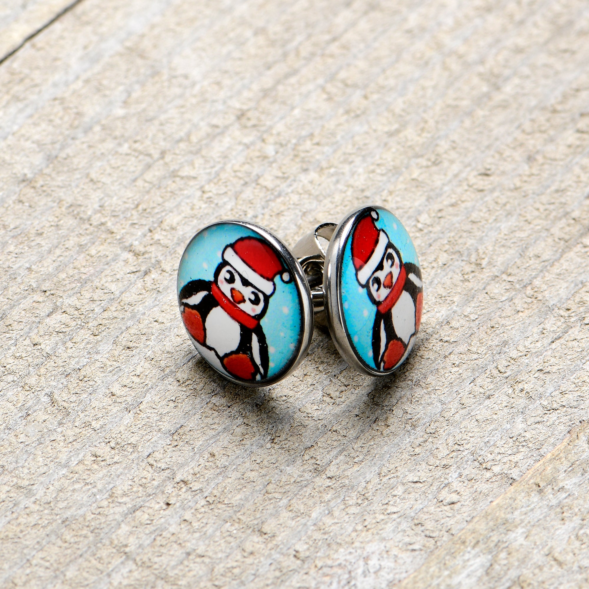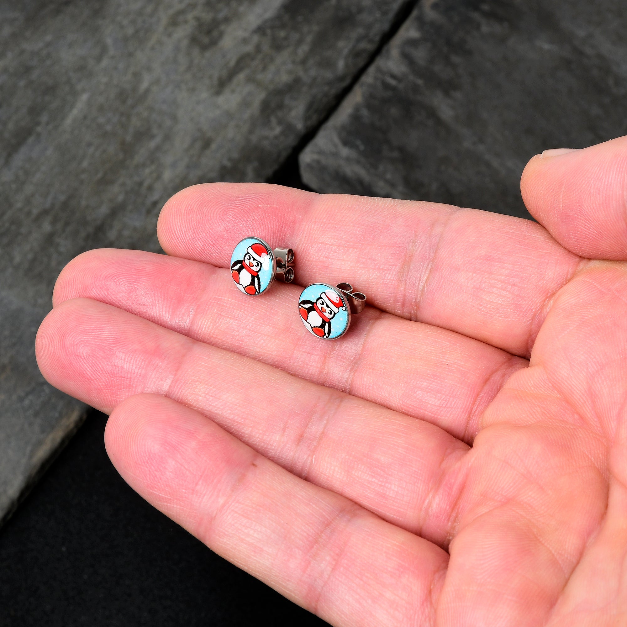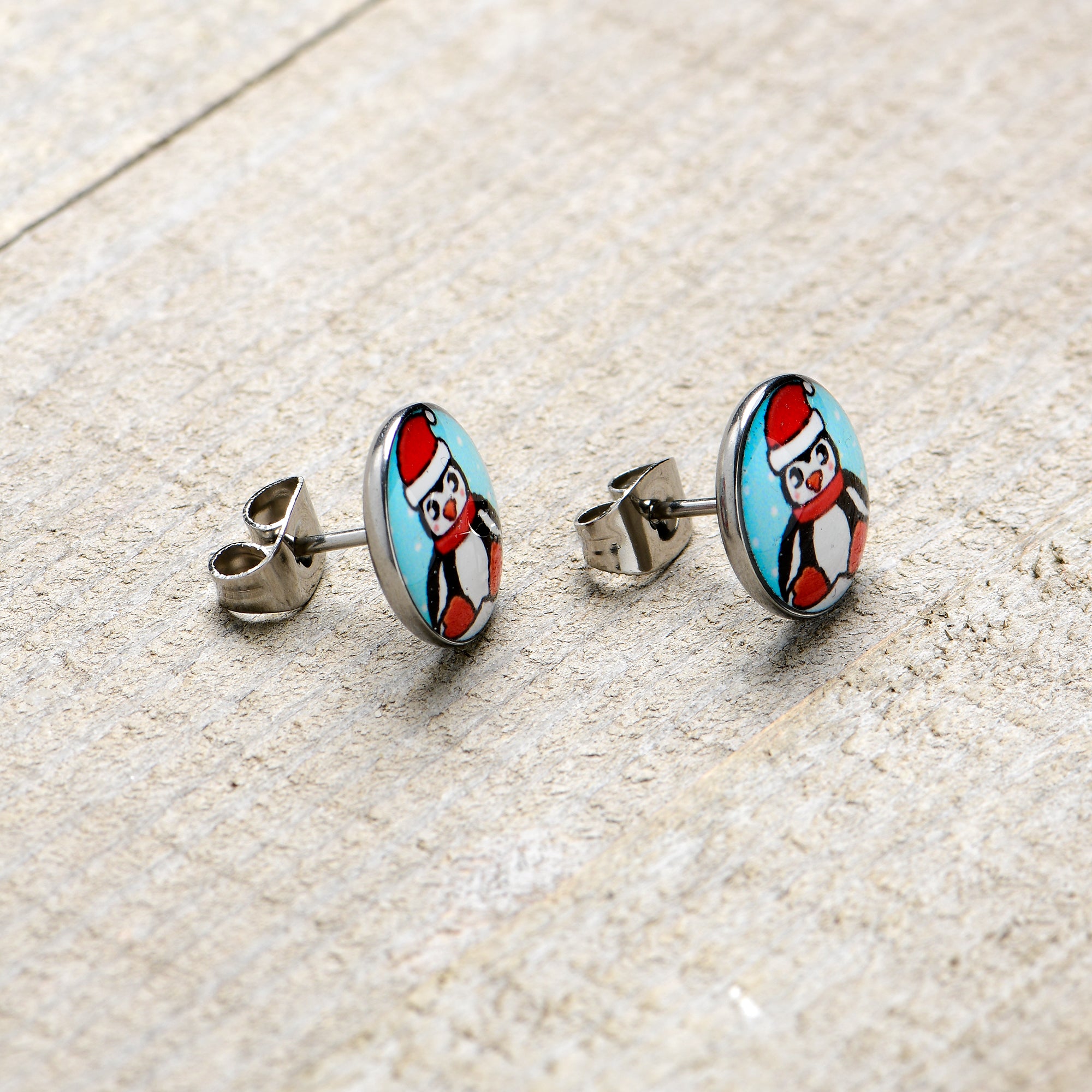 Hypoallergenic jewelry for sensitive skin.Snowfall Holiday Penguin Stud Earrings