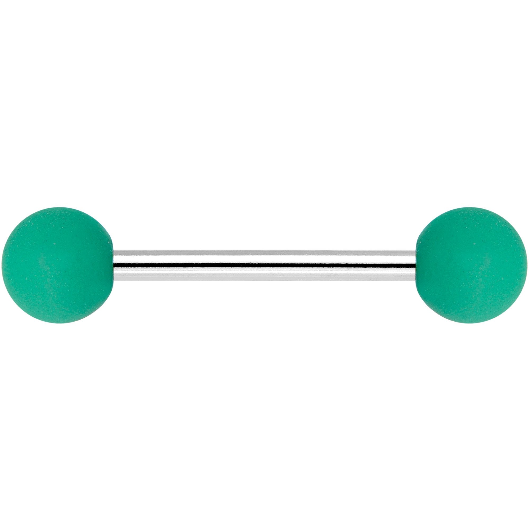 Be prepared for any event with simple tongue jewelry to suit your style. This 14 gauge tongue piercing is made with a 5/8" durable 316L surgical grade stainless steel straight barbell and features green silicone coated acrylic ball ends that have a soft feeling exterior even though the balls are still solid acrylic.