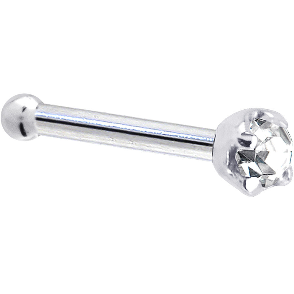Solid 14K White Gold 2mm Clear Cubic Zirconia Nose Ring