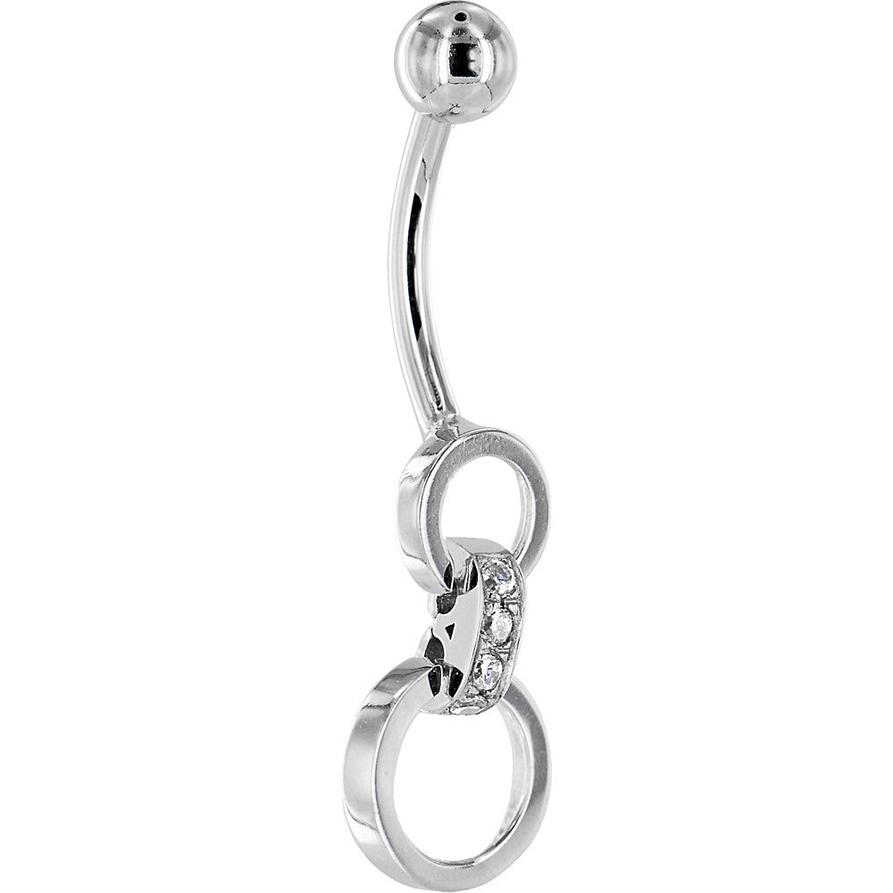 16G Solid 14K White Gold Circular Cubic Zirconia Hoop Dangle Belly Ring