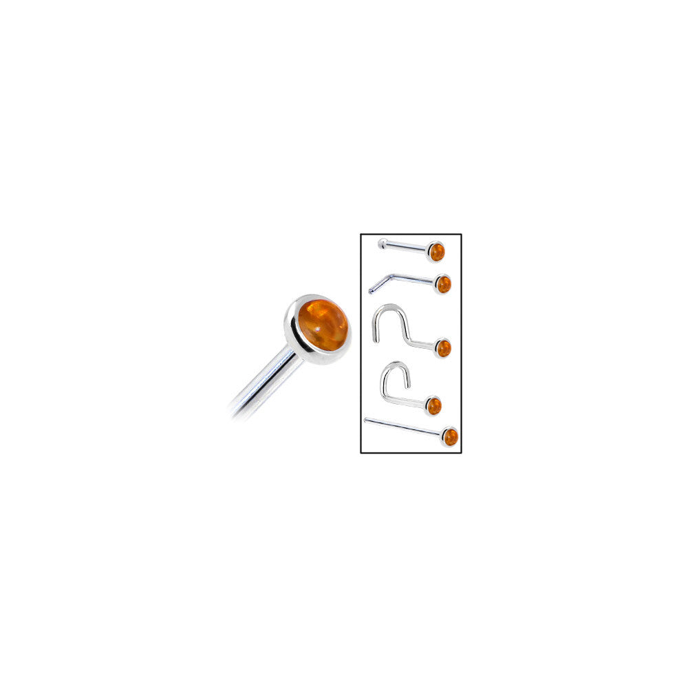Solid 14K White Gold 2mm Genuine Citrine Saffron Nose Ring