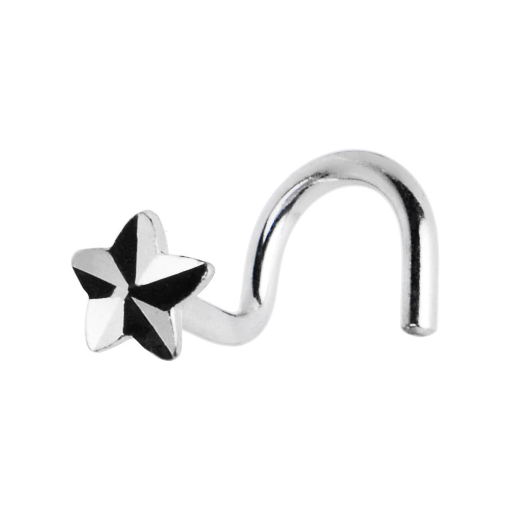 Solid 14K White Gold Raised Star Nose Screw Ring