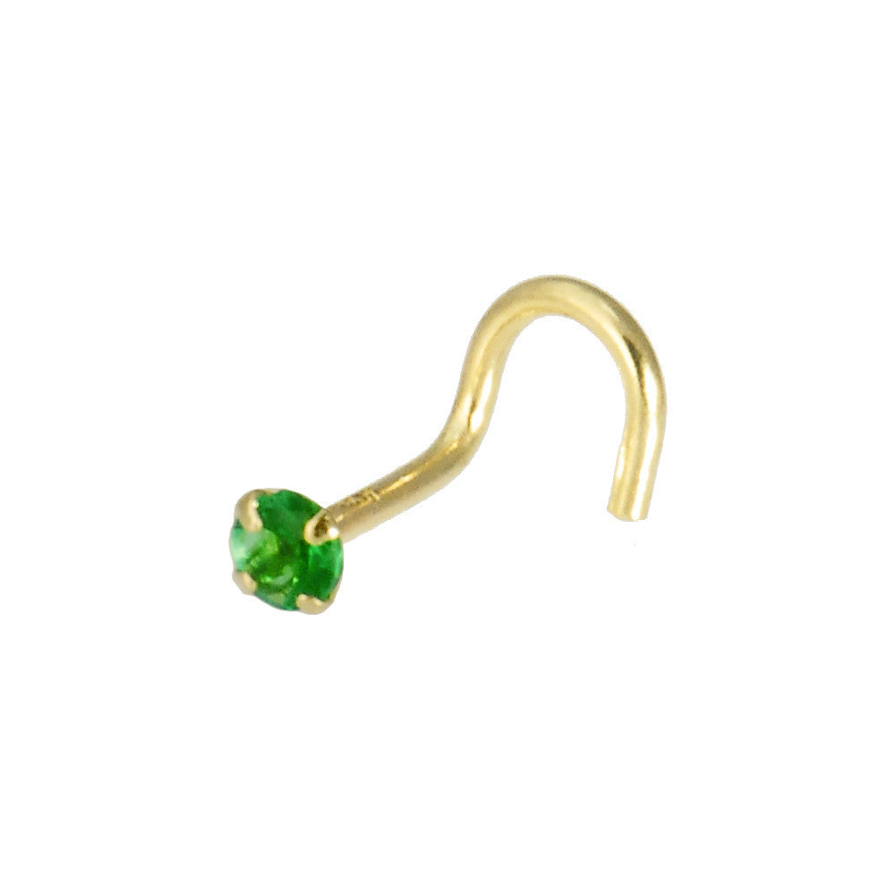 Solid 14k Yellow Gold 2mm Emerald Cubic Zirconia Solitaire Nose Ring