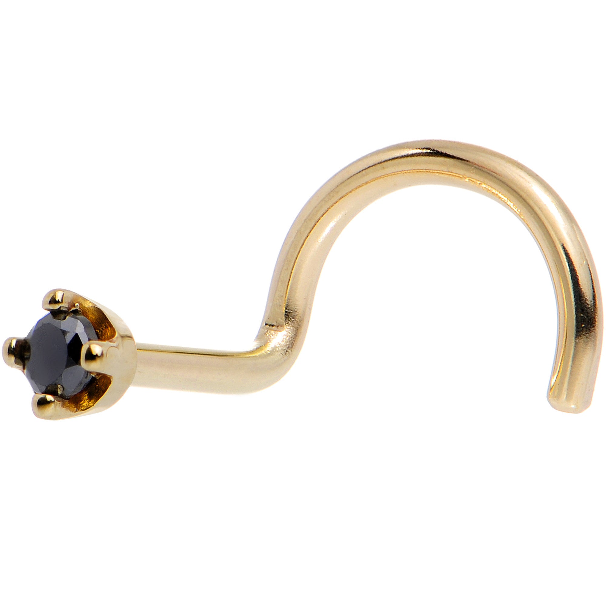 Solid 14K Yellow Gold 1.5mm Genuine Black Diamond Nose Ring