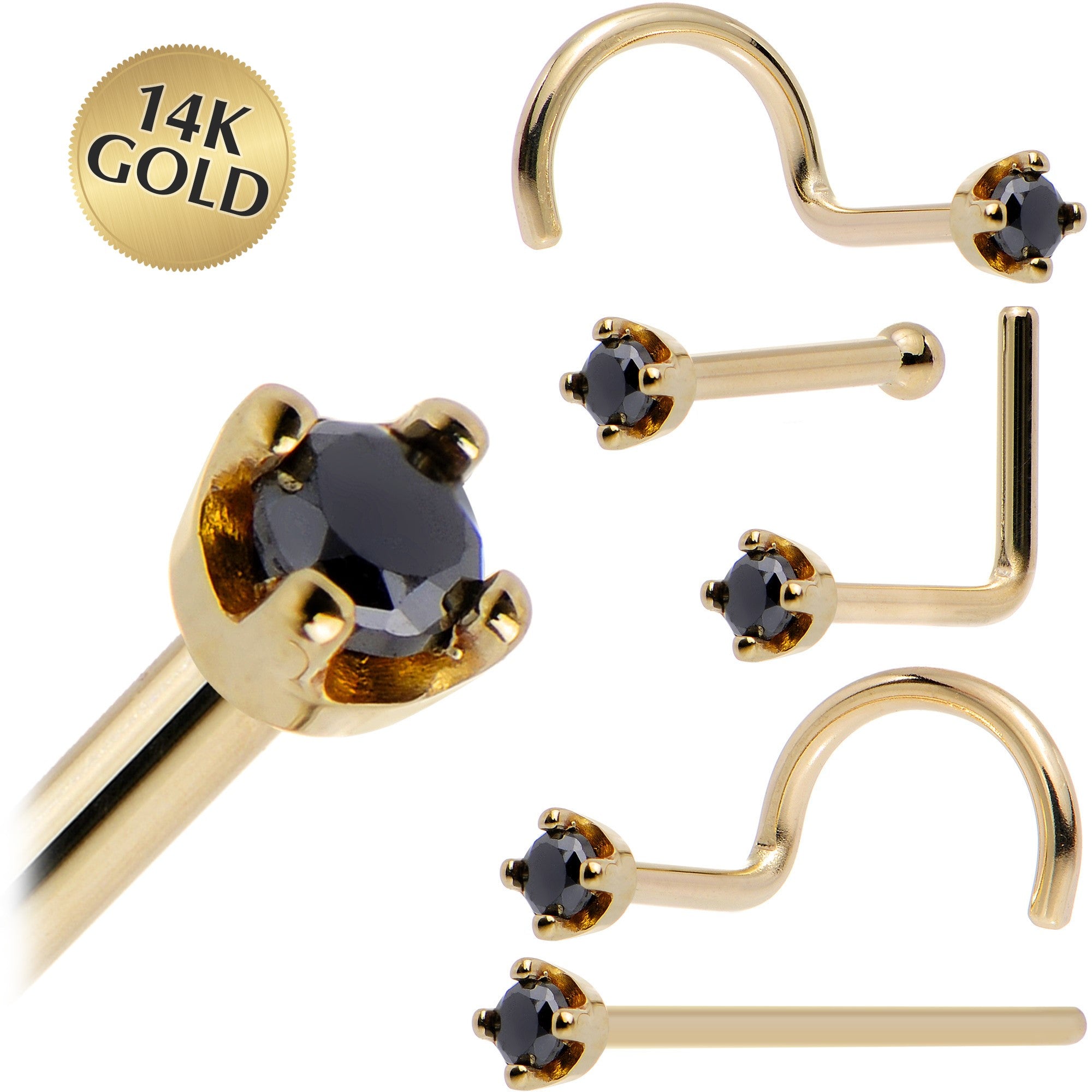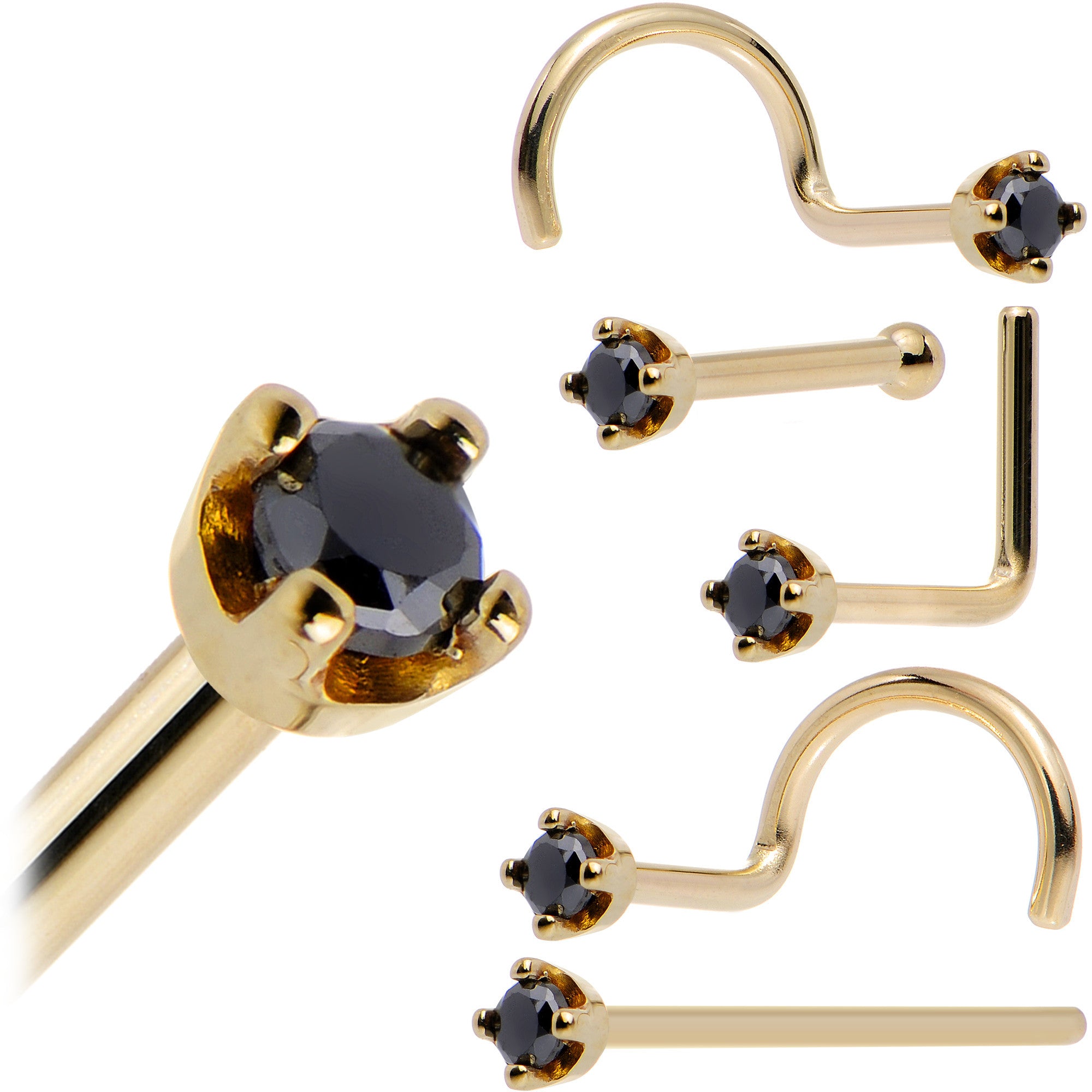 Customize your own solid gold black diamond nose ring for the perfect body jewelry nose accessory.