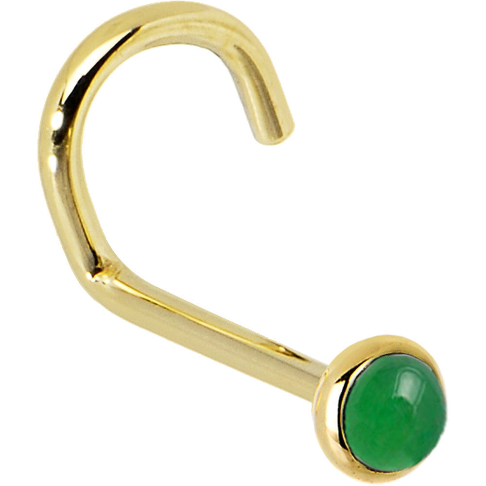 Solid 14K Yellow Gold 2mm Jade Nose Ring