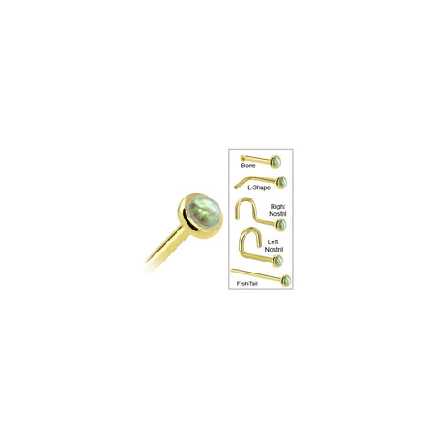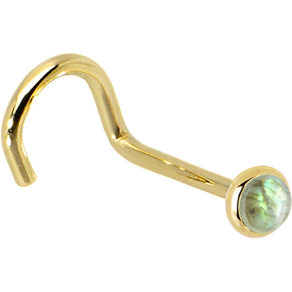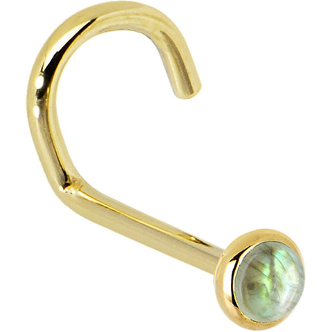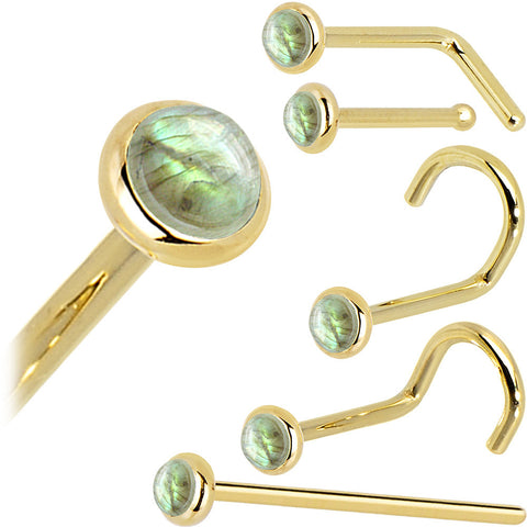 Solid 14K Yellow Gold 2mm Labradorite Nose Ring