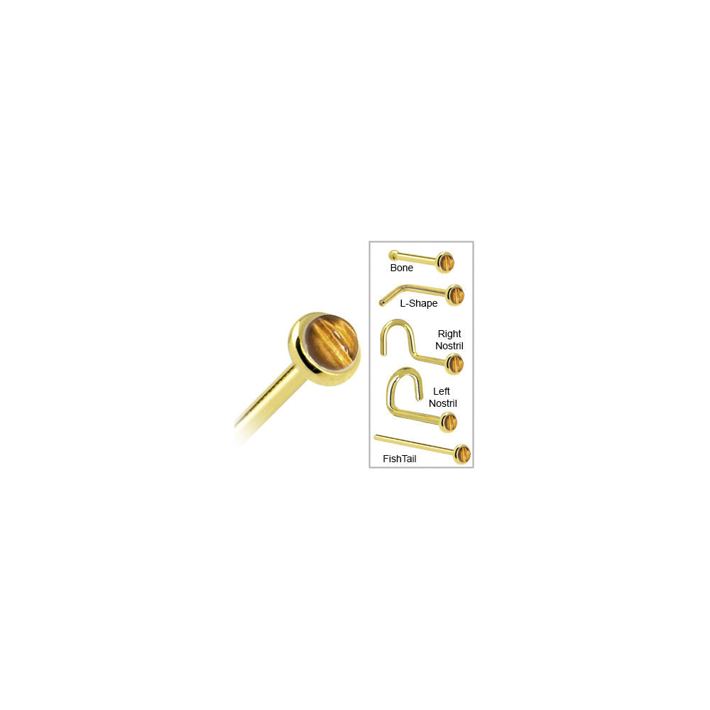 Solid 14K Yellow Gold 2mm Tiger Eye Nose Ring
