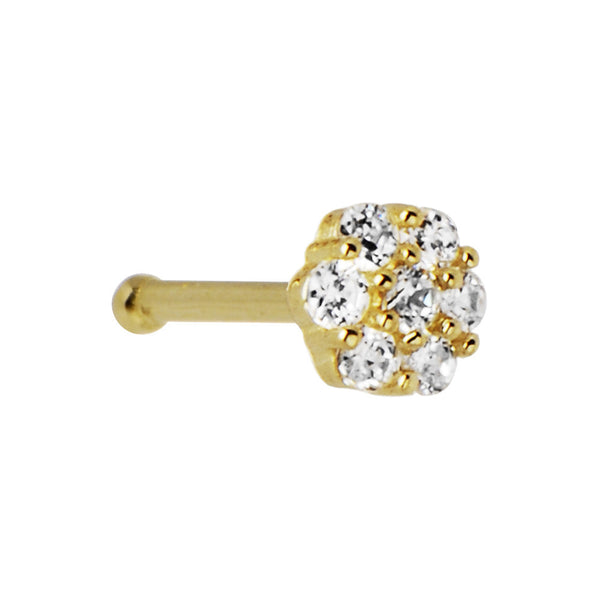 Solid 14K Yellow Gold Clear CZ Flower Nose Bone