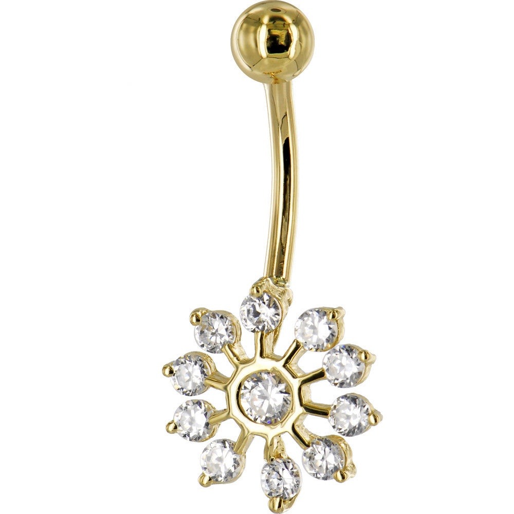 Be Sensational and Look It with this Dazzling Cubic Zirconia Solid Gold Belly Ring. Solid Gold Body Jewelry.