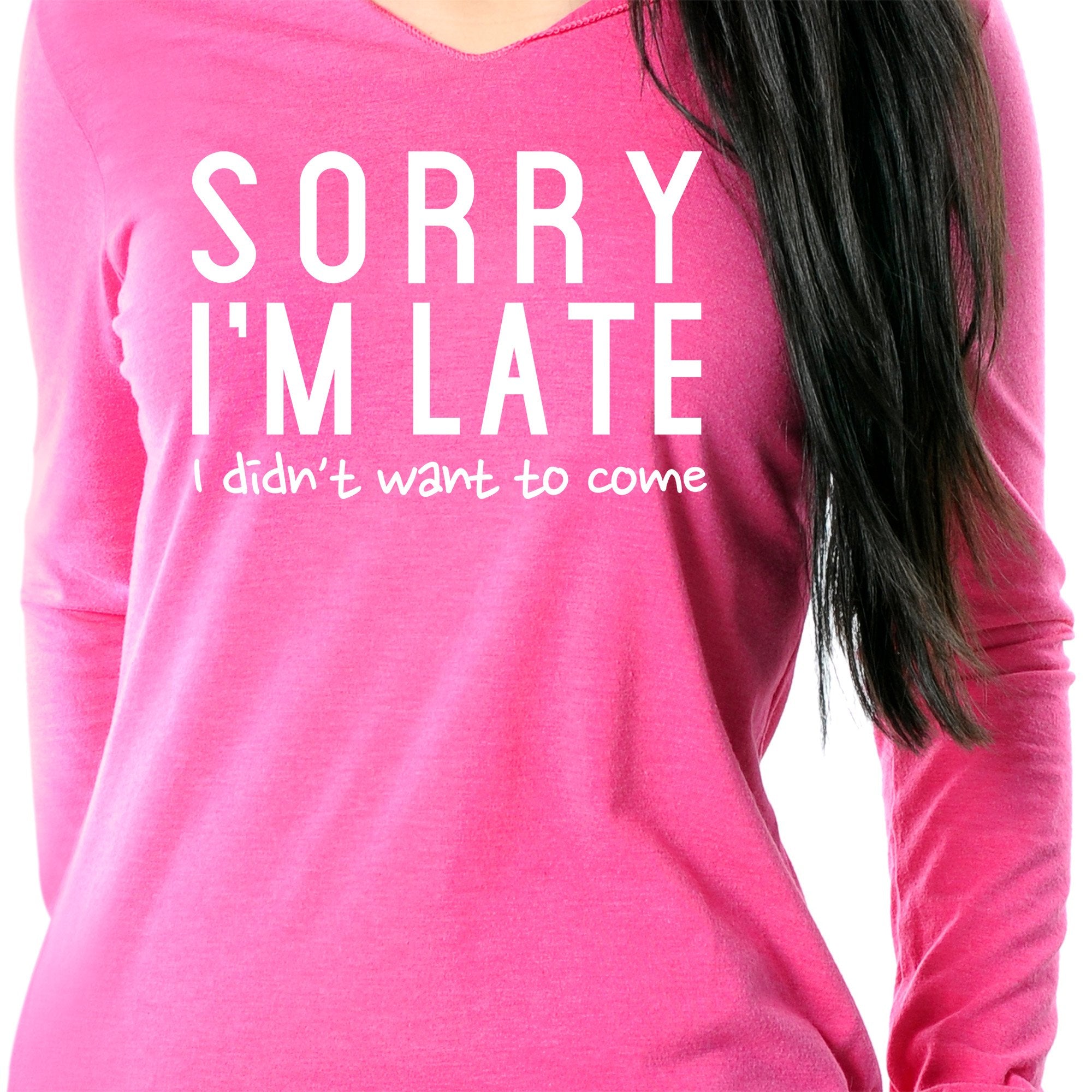 Let the world know that you didn't want to be here anyway whenever you wear Body Candy's 50/25/25 poly/ring spun combed cotton and rayon "Sorry I'm Late, I Didn't Want To Come" v-neck hoodie. This soft and comfortable hoodie features shoulder to shoulder taping, a split v-neck with raw edge, and has a fitted style and is lightweight that is the perfect fusion of lightweight comfort and carefree style, combined into this fashionable pullover hoodie for women. The tri-blend fabric features colors that have a unique character and may have subtle variations in color.