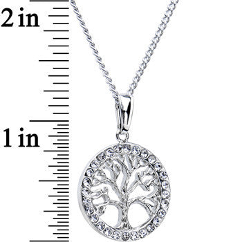 Stainless Chain Clear Gem Tree of Life Medallion Pendant Necklace