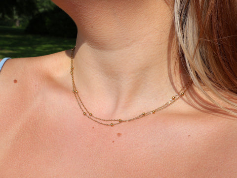 Stainless Steel Gold Tone PVD Ball Station Necklace Satellite Chain Double Necklace