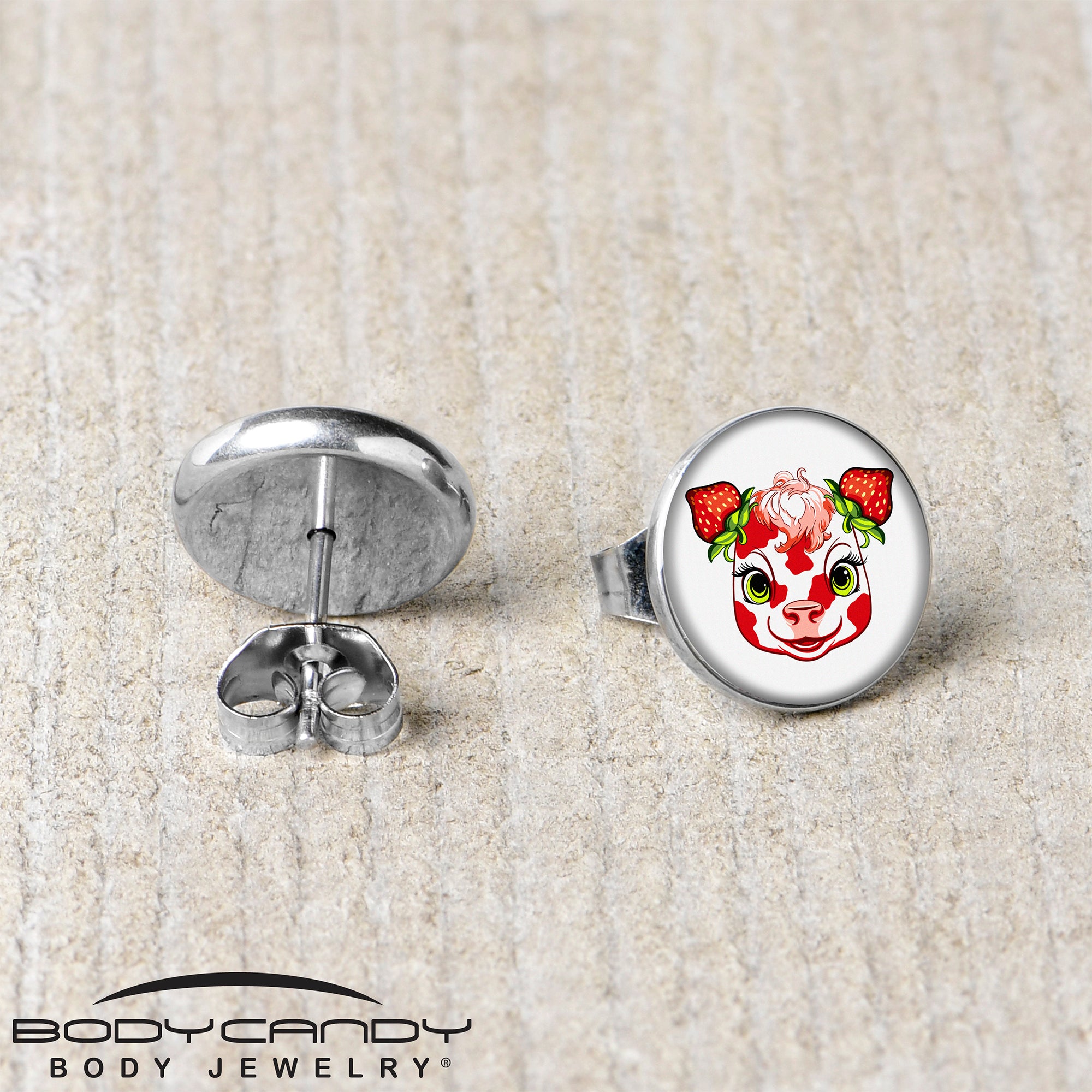 Hypoallergenic jewelry for sensitive skin.Stawberry Cow Stud Earrings