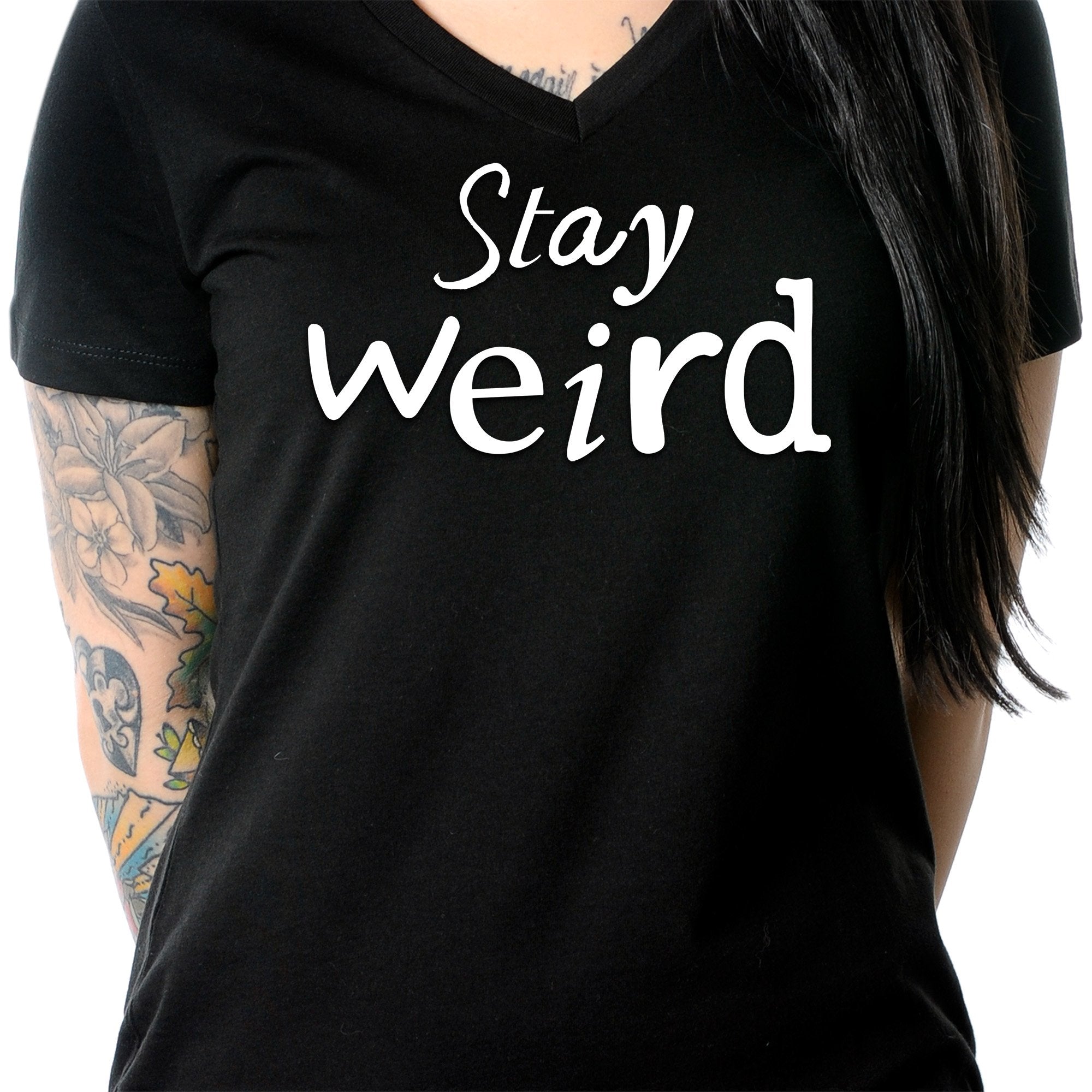 Let the world know that you want to keep things weird whenever you wear Body Candy's comfortable 100% cotton "Stay Weird" t-shirt! This 100% ring spun combed cotton tee shirt features a ribbed knit neckline, v-neck shoulder to shoulder taping, and a comfortable fit that will make this cotton t-shirt one of your favorites. It's the perfect tee for a polished look!