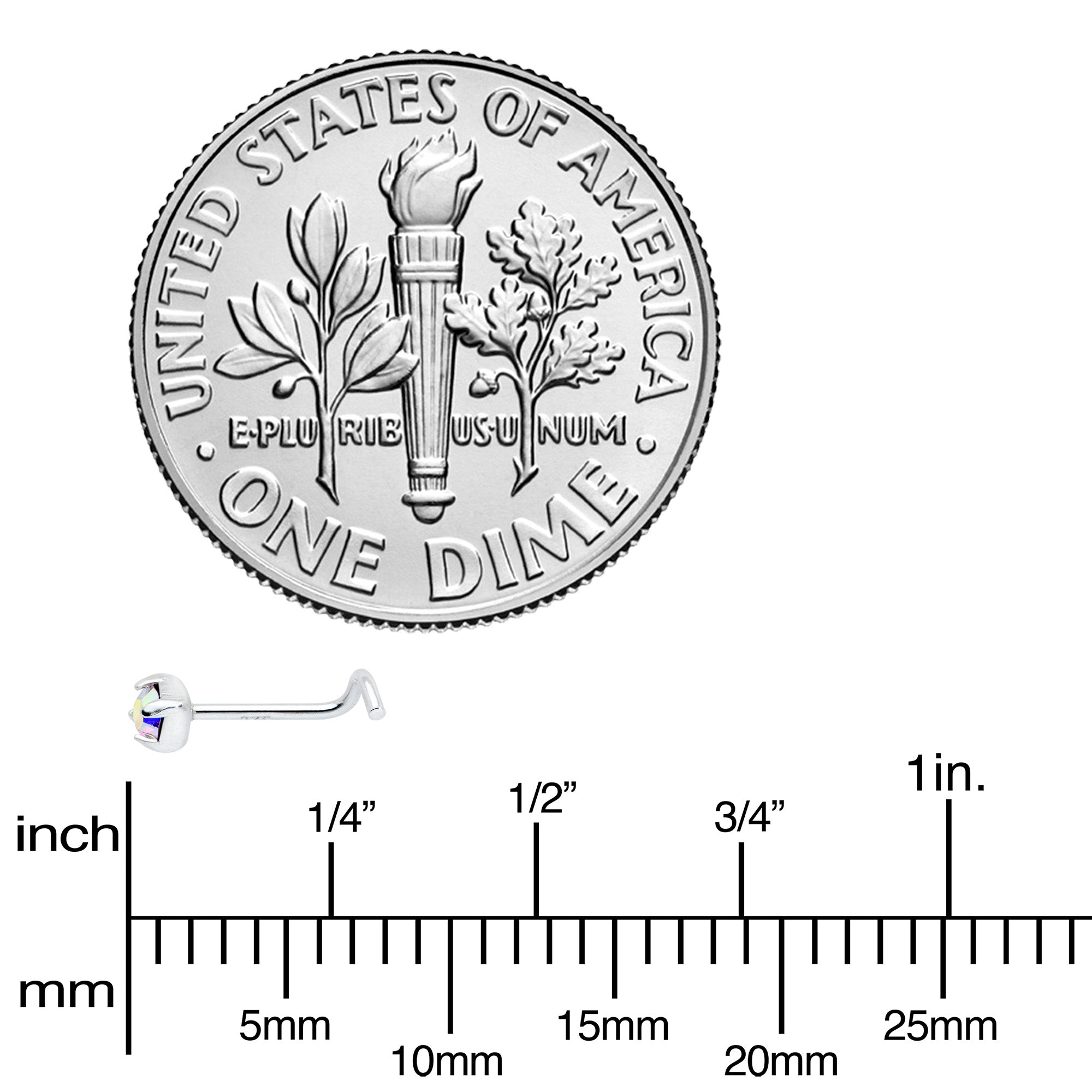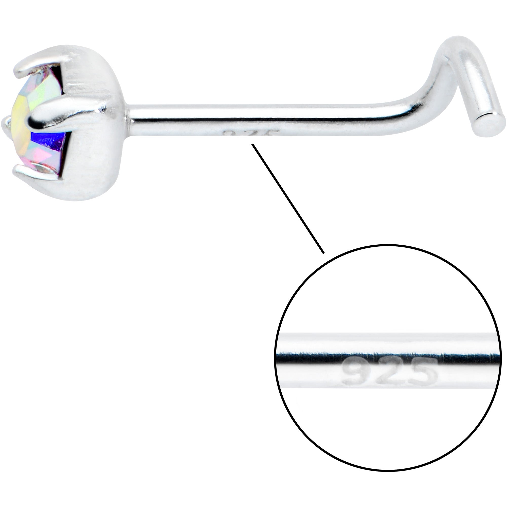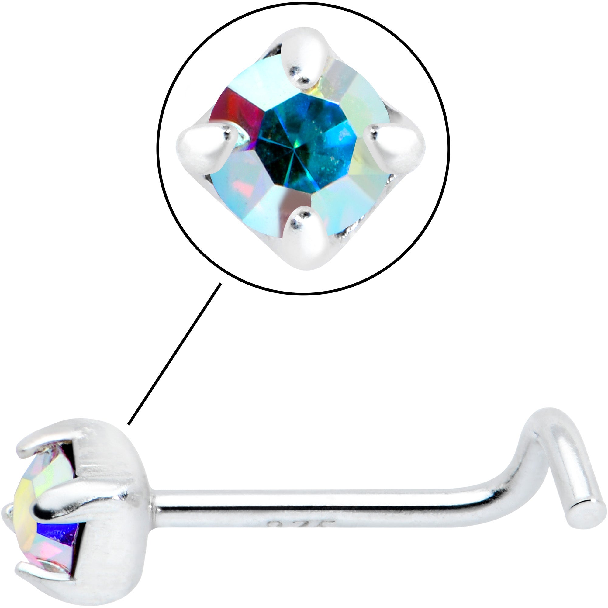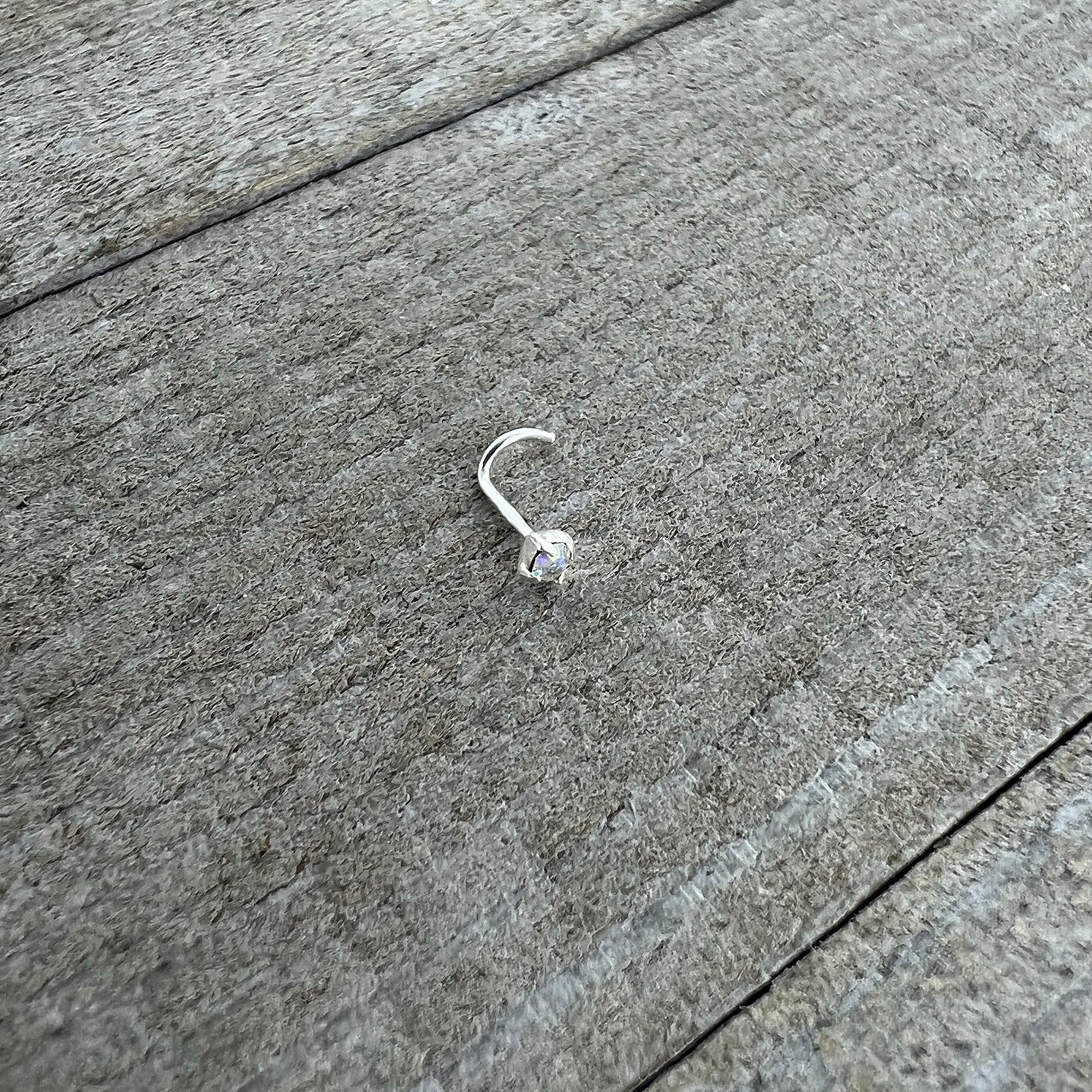 Sterling Silver 3mm Aurora Nose Ring Created with Crystals