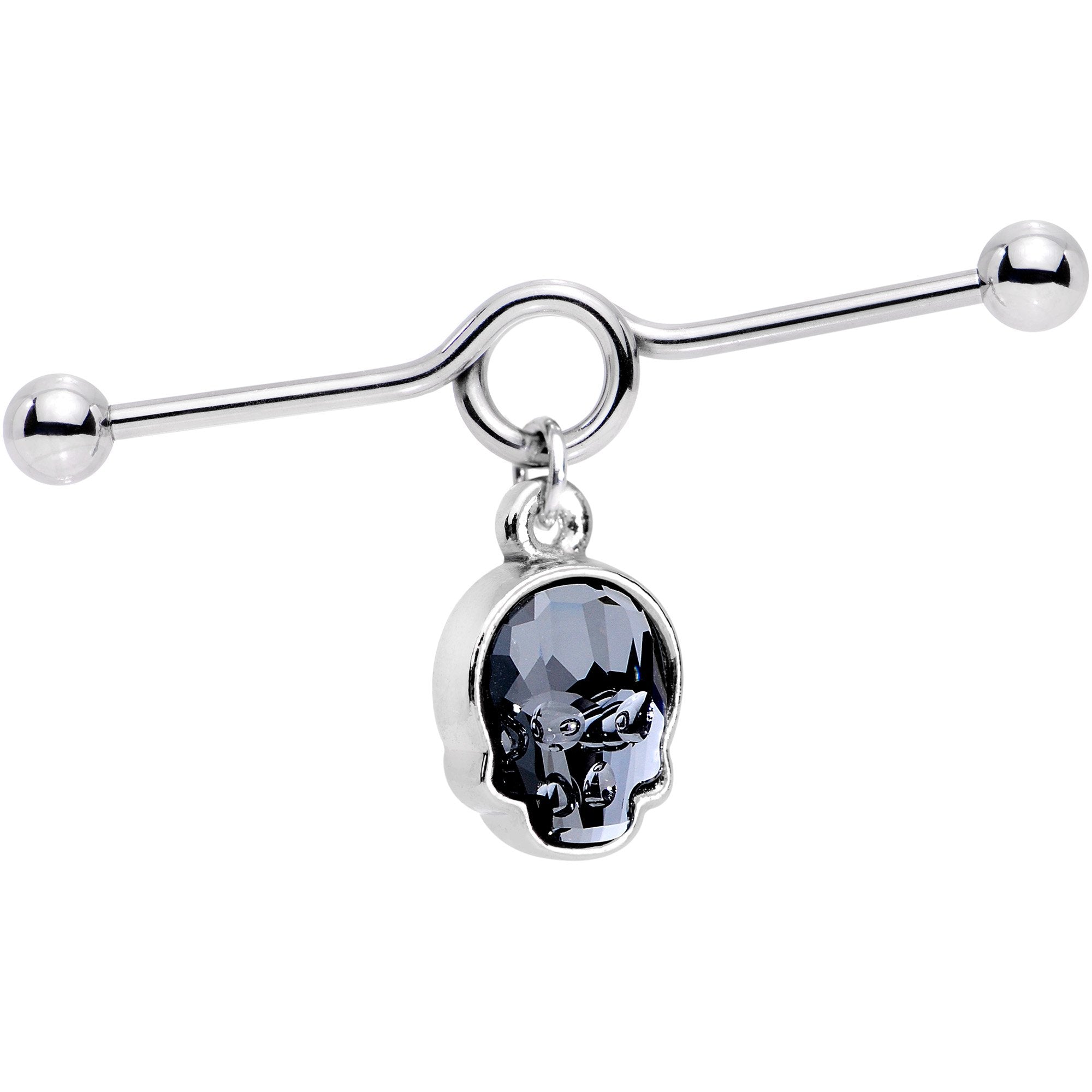 If sugar skulls are your jam then this unique industrial project barbell ring is the perfect fit. This 14 gauge helix industrial piercing features a sparkling sugar skull charm created with crystals dangling from the center of this out-of-the-ordinary industrial project barbell. The sugar skull charm dangles from the end of a 1 7/16" straight barbell made with durable 316L surgical grade stainless steel. Perfect for Halloween, Day of the Dead, or any time!