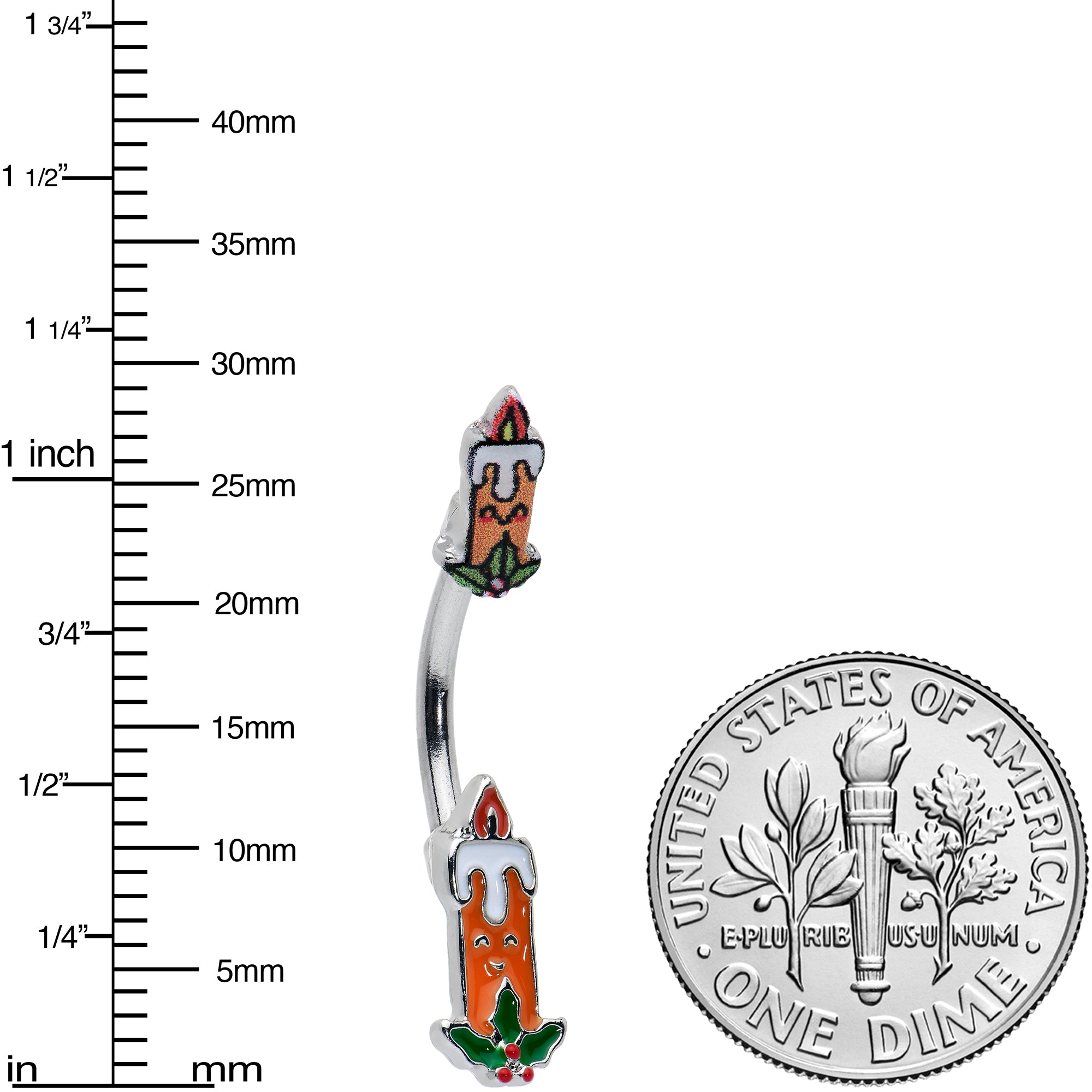 Sweet Christmas Holiday Candle Holly Double Mount Belly Ring