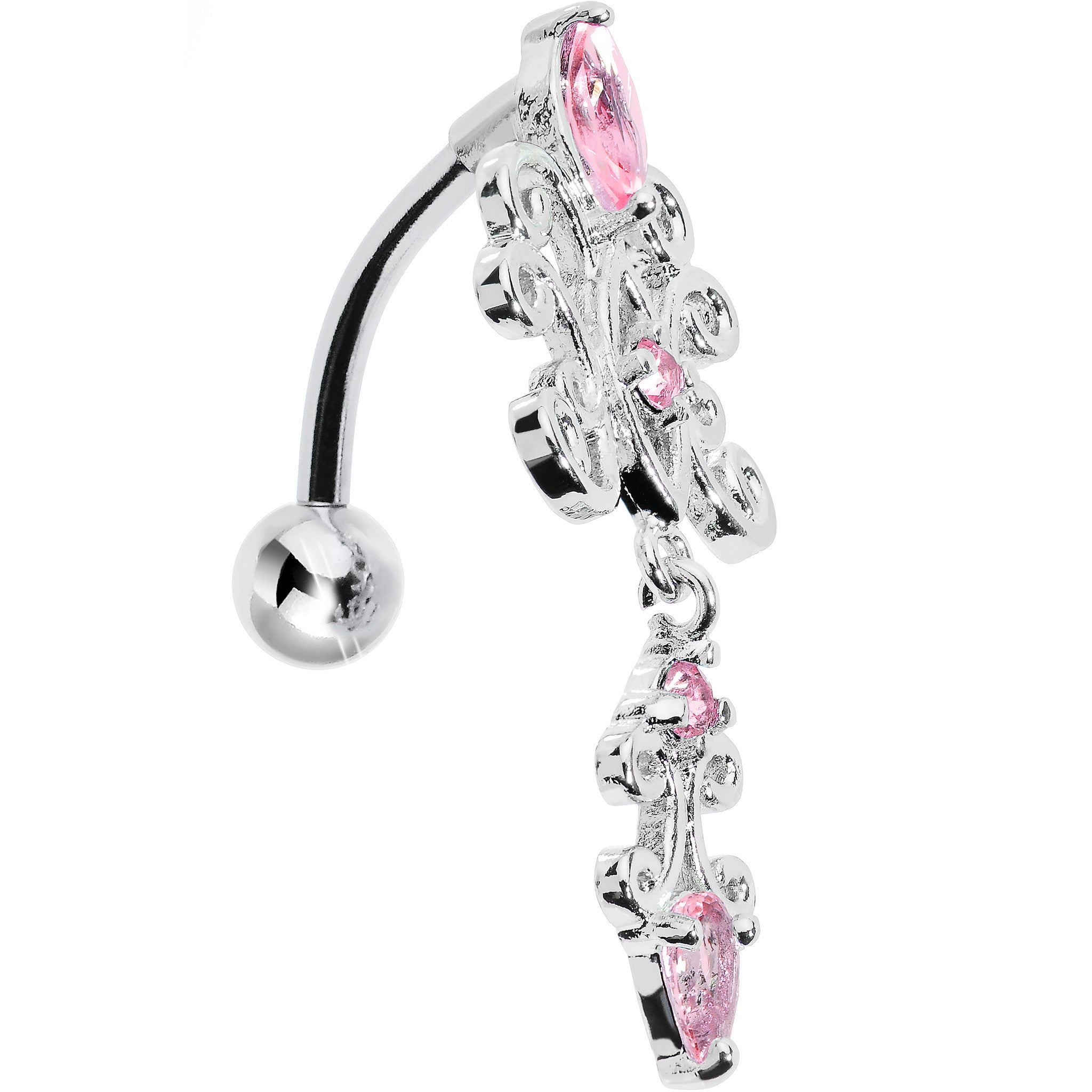 Top Mount Pink Gem Silvery Symmetry Dangle Belly Ring
