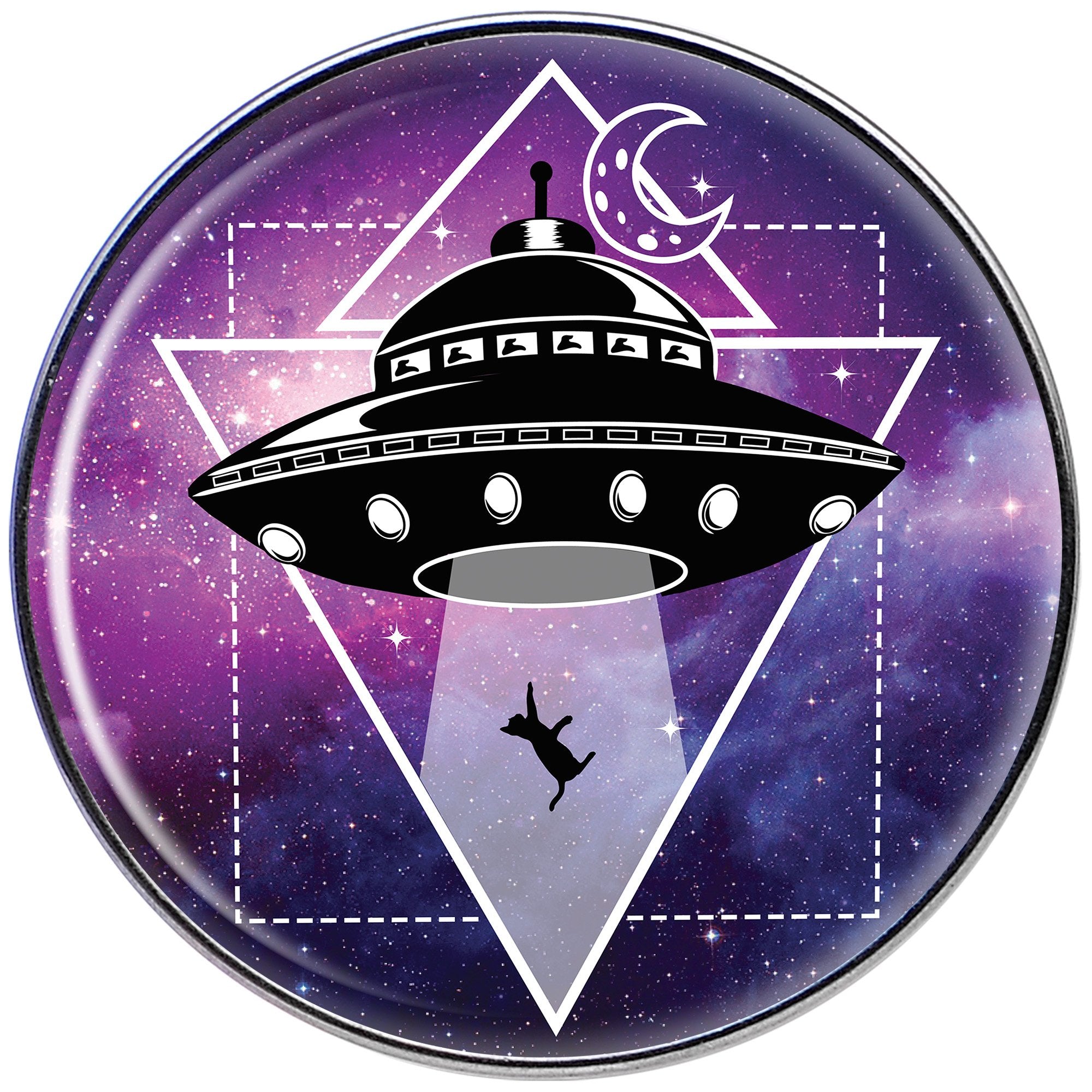 If you love UFOs and cosmic kitty cats then this 16 gauge cartilage jewelry is right for you! Made with a 1/4" durable 316L surgical grade stainless steel straight barbell, this tragus earring features a UFO beaming up a cute cat on a cosmic blue and pink background logo inlay.